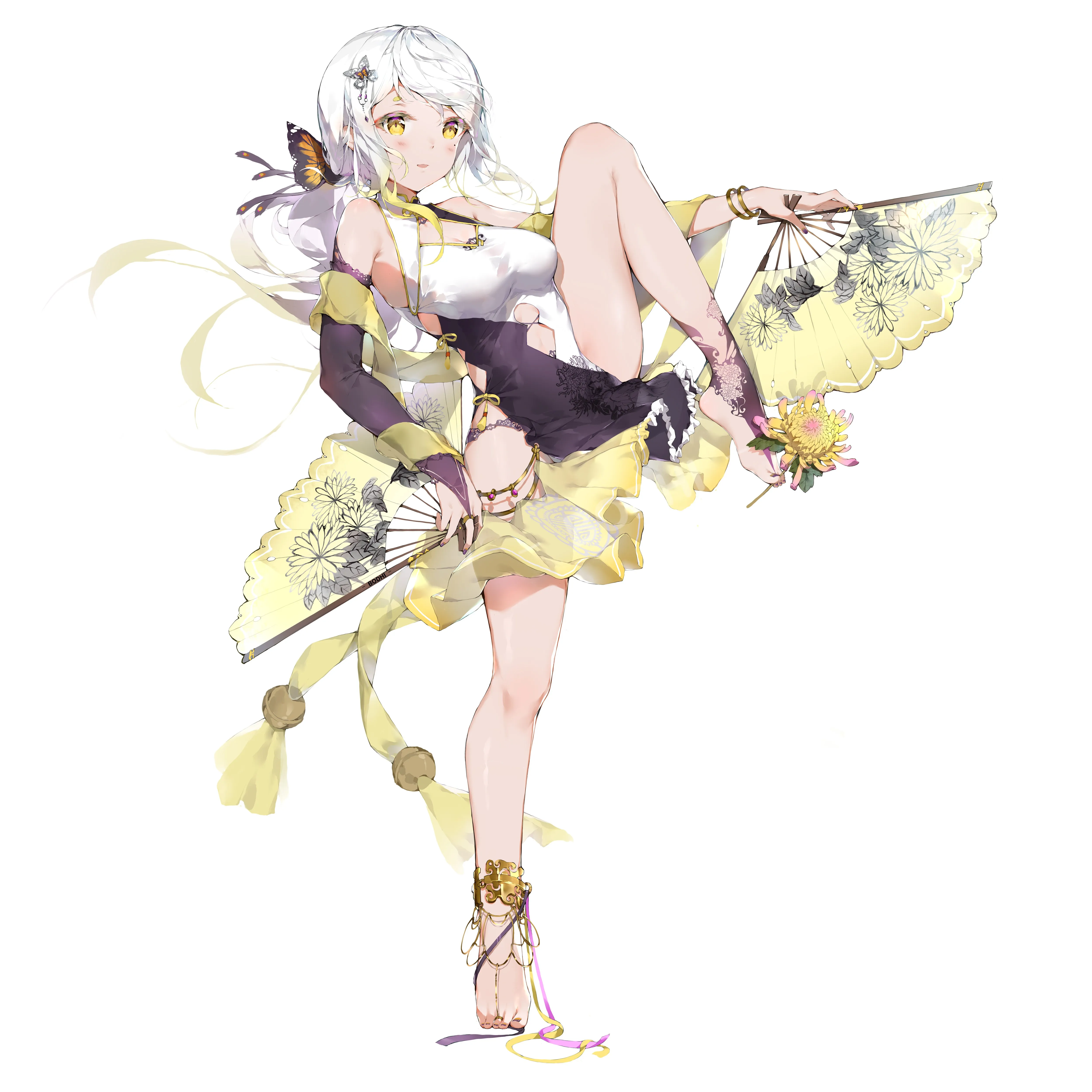 الشعر الأبيض البوتي الشجرة المقدسة للعسكريين الرسوم المتحركة الفتاة التصميم البسيط خلفية بسيطة خلفية بيضاء عيون صفراء لصور الهاتف 4K Wallpapers