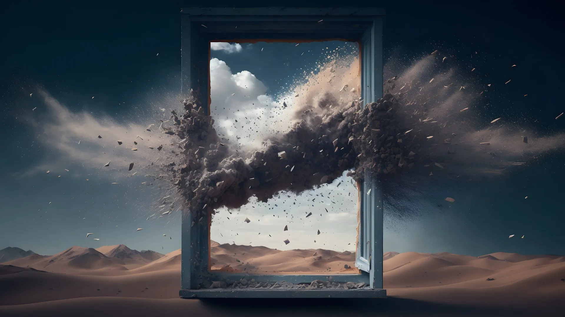 مناظر طبيعية، صحراء، تل، انفجار، نافذة، تجريدي، رمل