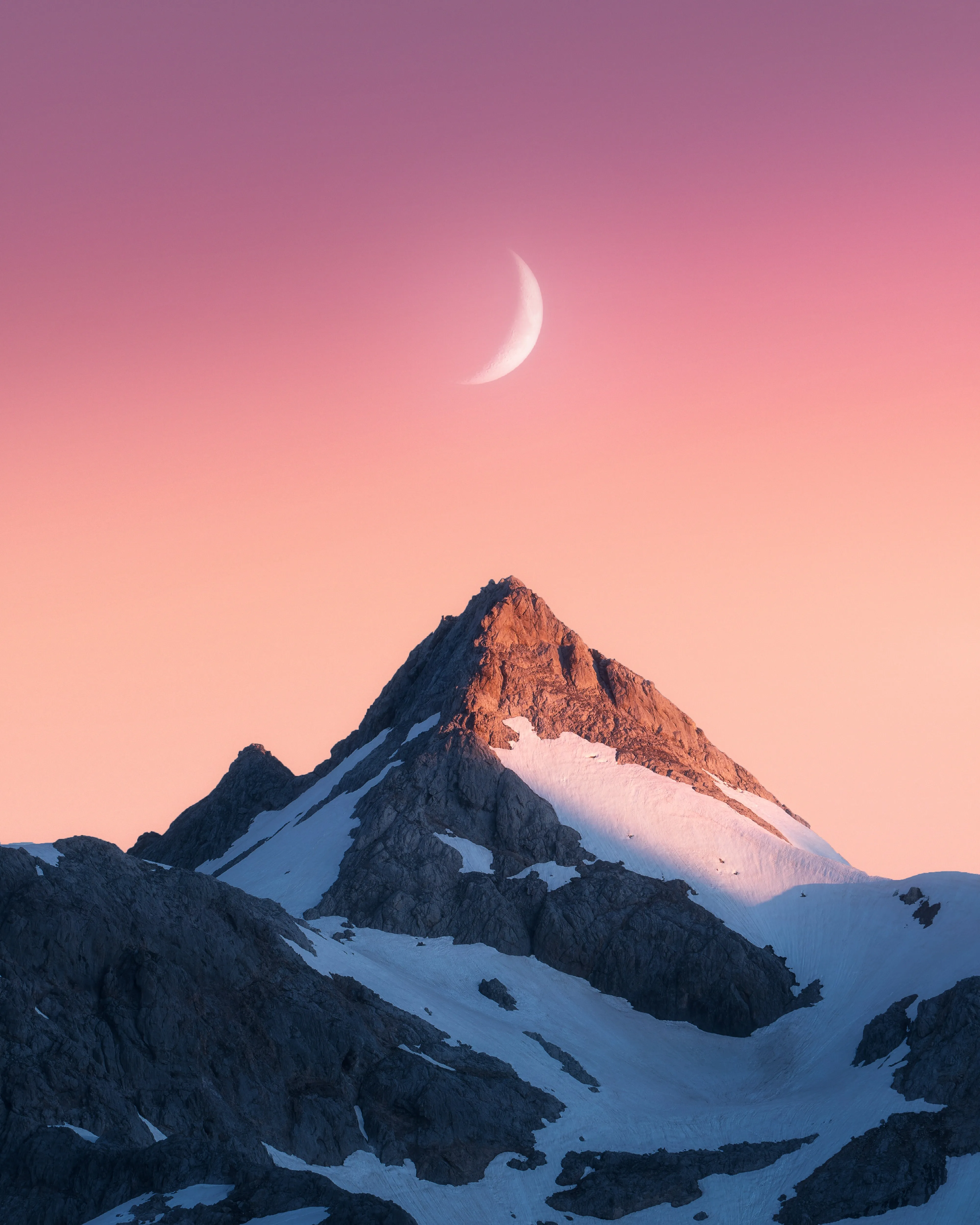 Peak Photography, Mountains, Scenery, Moon, Snow, Nature, Mobile Wallpaper, 4K Wallpaper