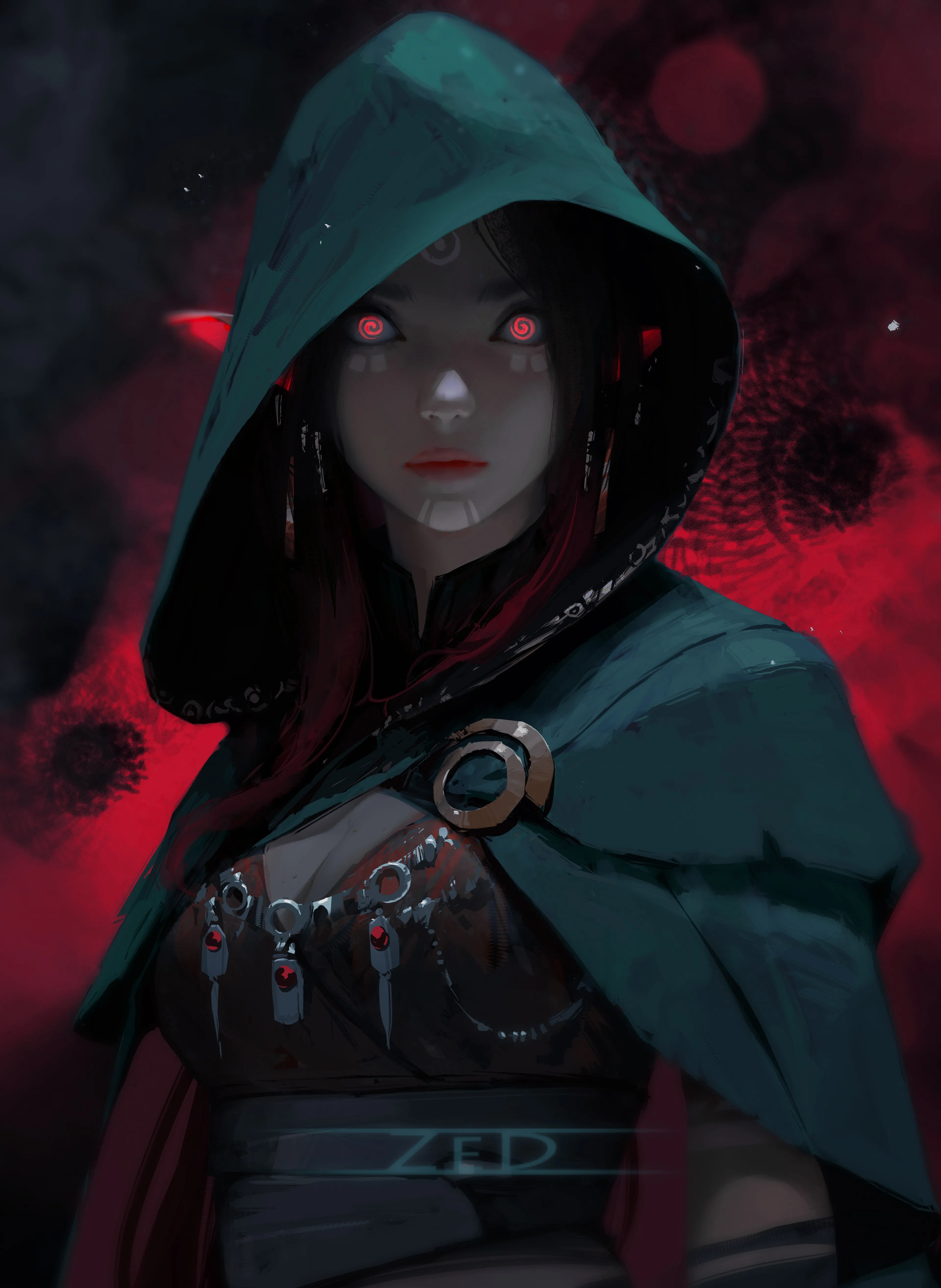 الربيع والخريف امرأة عين حمراء رسمة قبعة أذن حيوانية شال أحمر بورتريه صورة على هاتف 4K Wallpapers