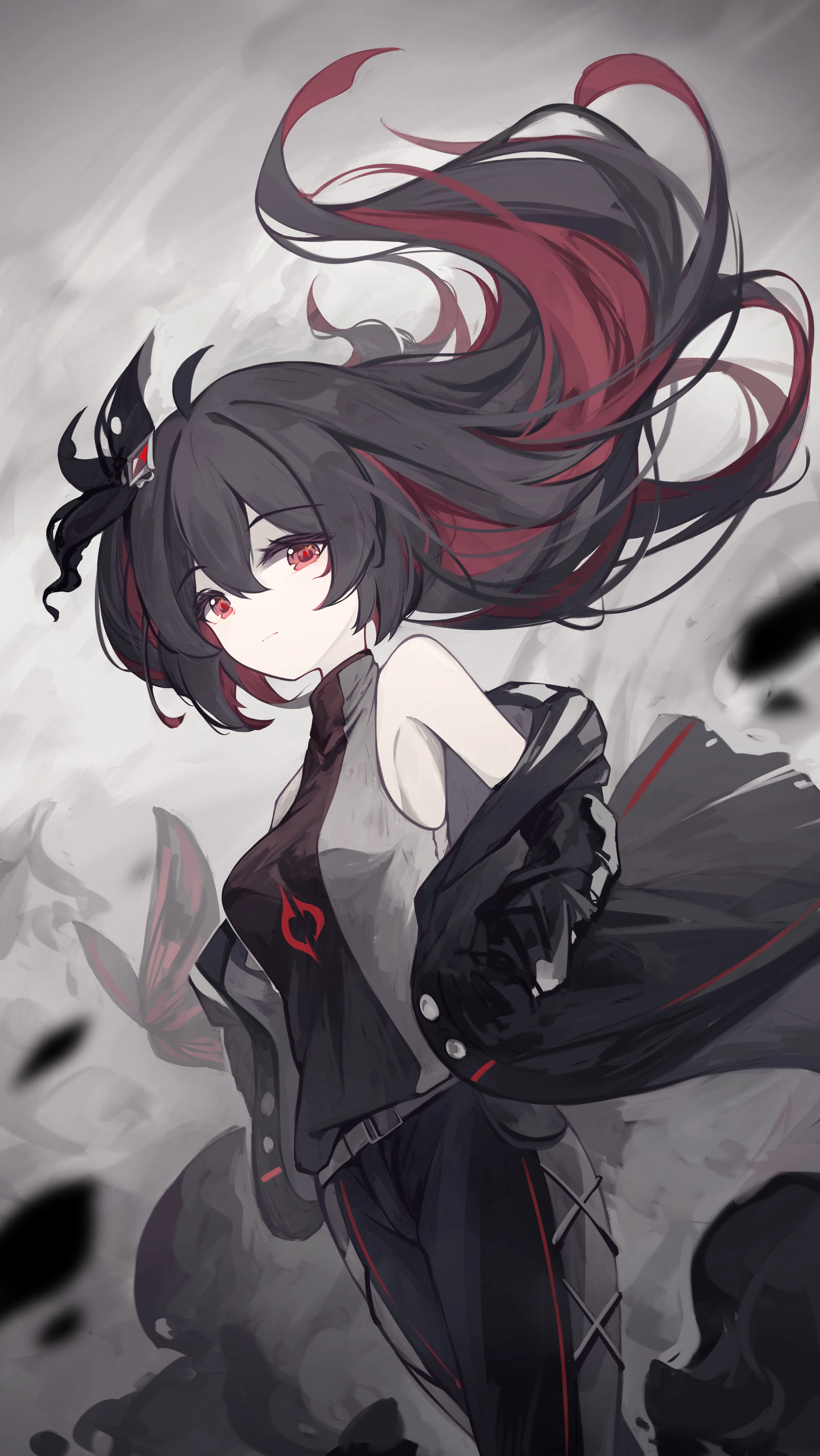عين حمراء بن هوا كرتون فتاة لعبة فيديو لعبة كرتون شعر أسود سروال ربطة الشعر ورق جدران هاتف 4K ورق جدران