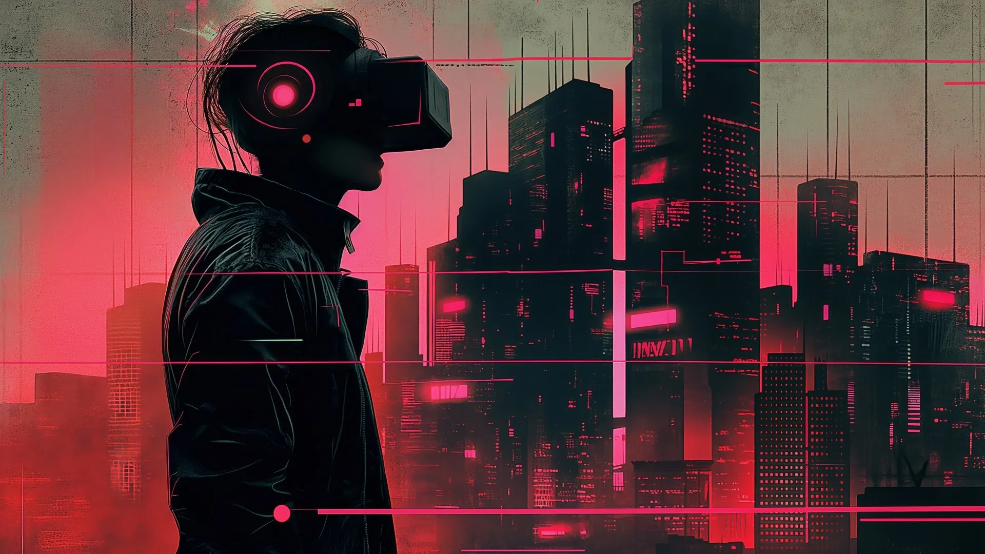 مدينة سايبربانك خط السماء سماعات الواقع الافتراضي سماعات الواقع الافتراضي لسطح المكتب ورق حائط 4K