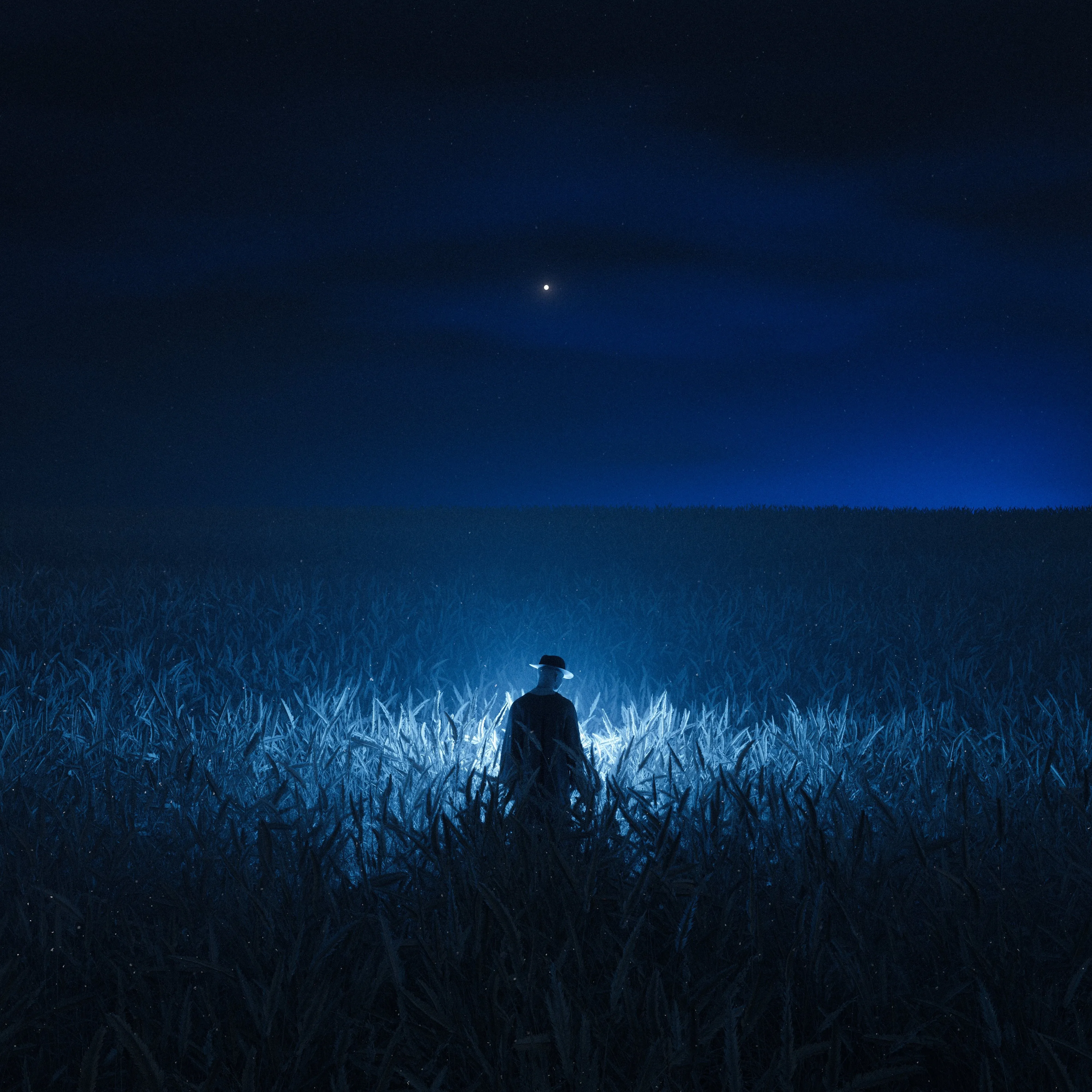 Digital Art, Night, Farm, Blue Light, Field, Horizon, Mobile Wallpaper, 4K Wallpaper