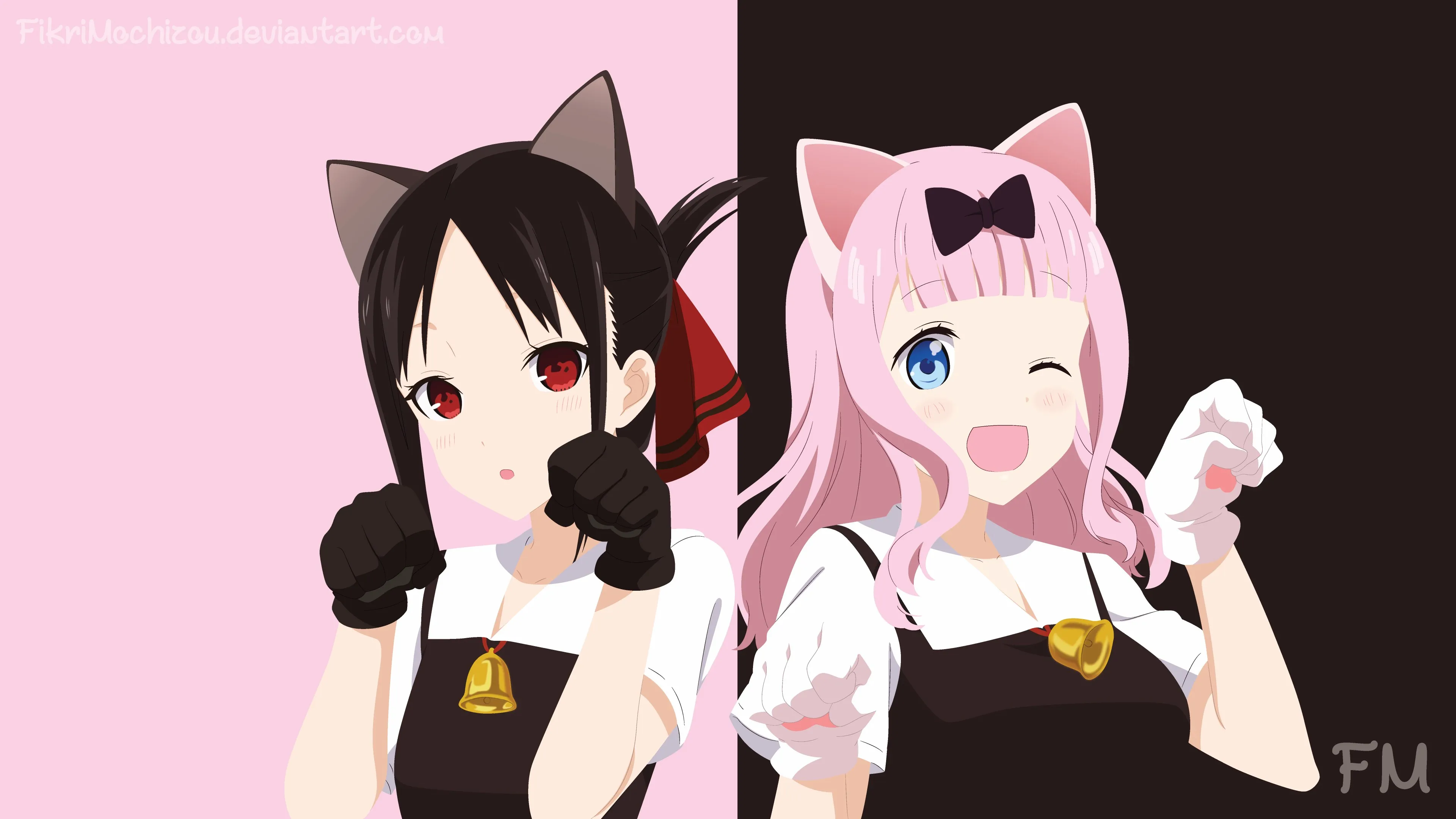 حب هو حرب فتاة أنمي أنمي جرس أذن حيوانية كاجي شينجو فوجي هارا 4K خلفيات سطح المكتب