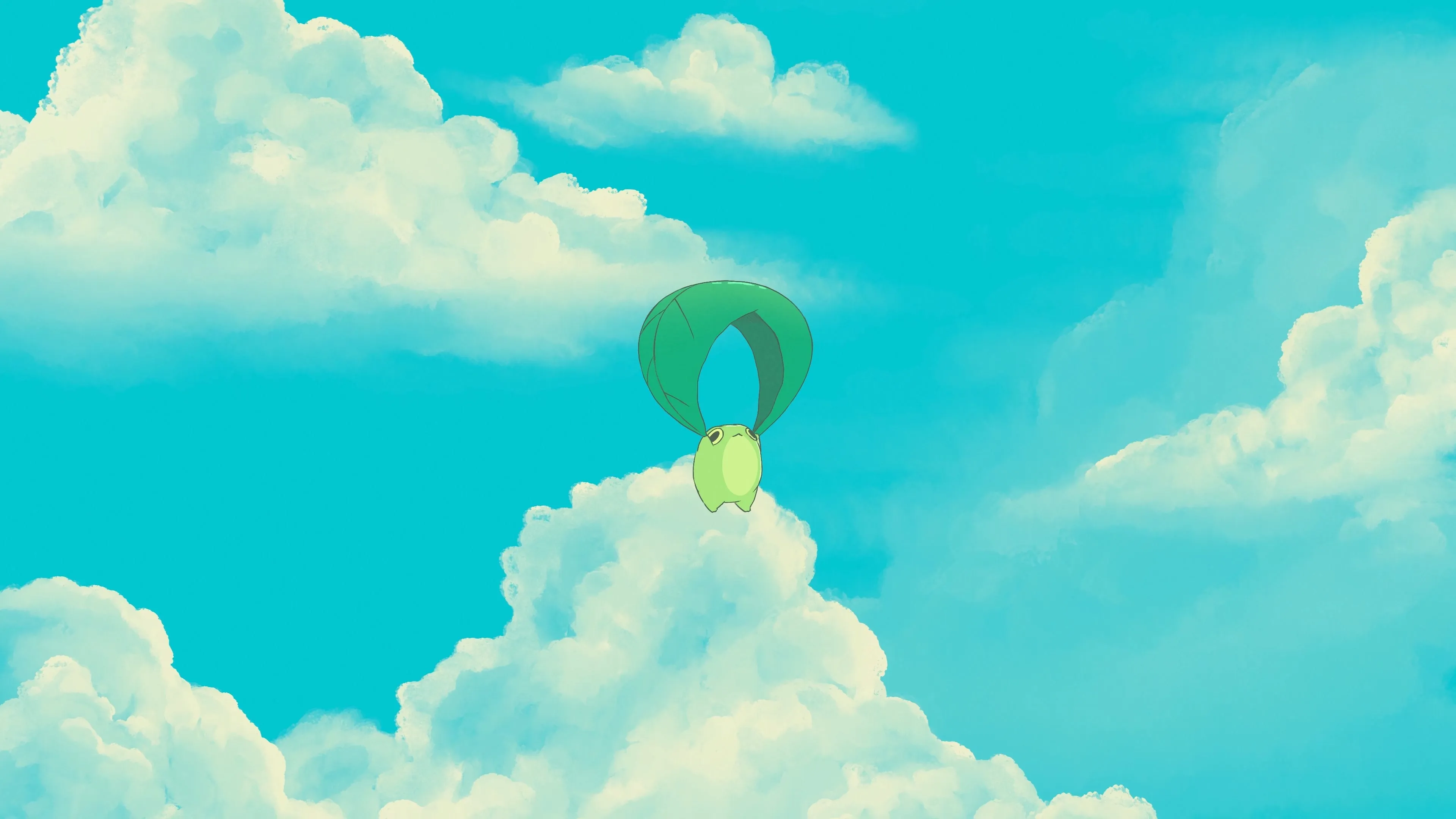 AbiToads فن رقمي رسم توضيحي رسم رقمي طبيعة حيوانات قدمي غيمة سماء هبوط مظلة أزرق وسمية 4K ورق جدران