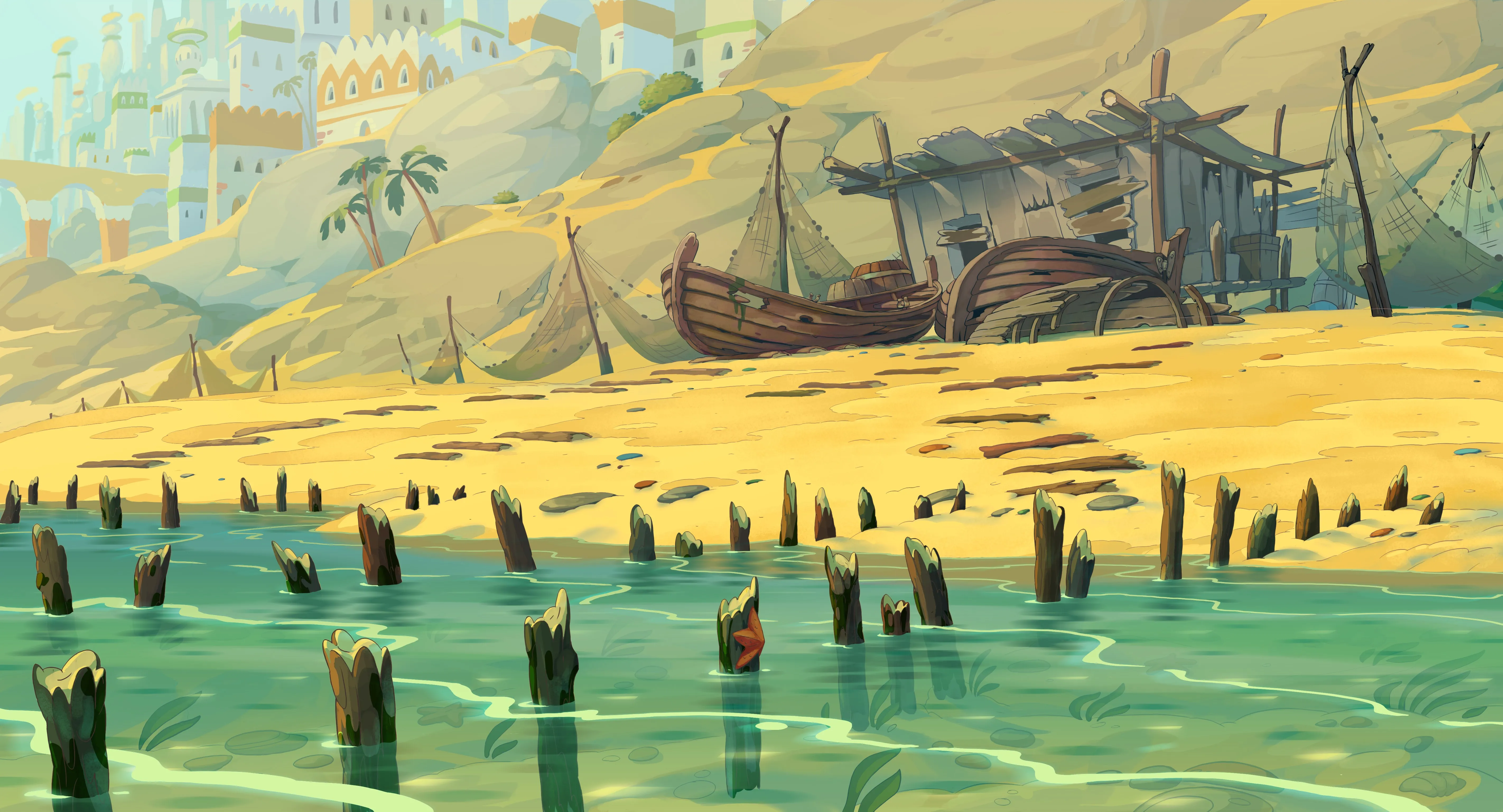 مناظر طبيعية، فن آلي، وهم، ساحل، سفينة، رمل، ماء، حاضرة وهمية، ورق جدران كمبيوتر، ورق جدران 4K