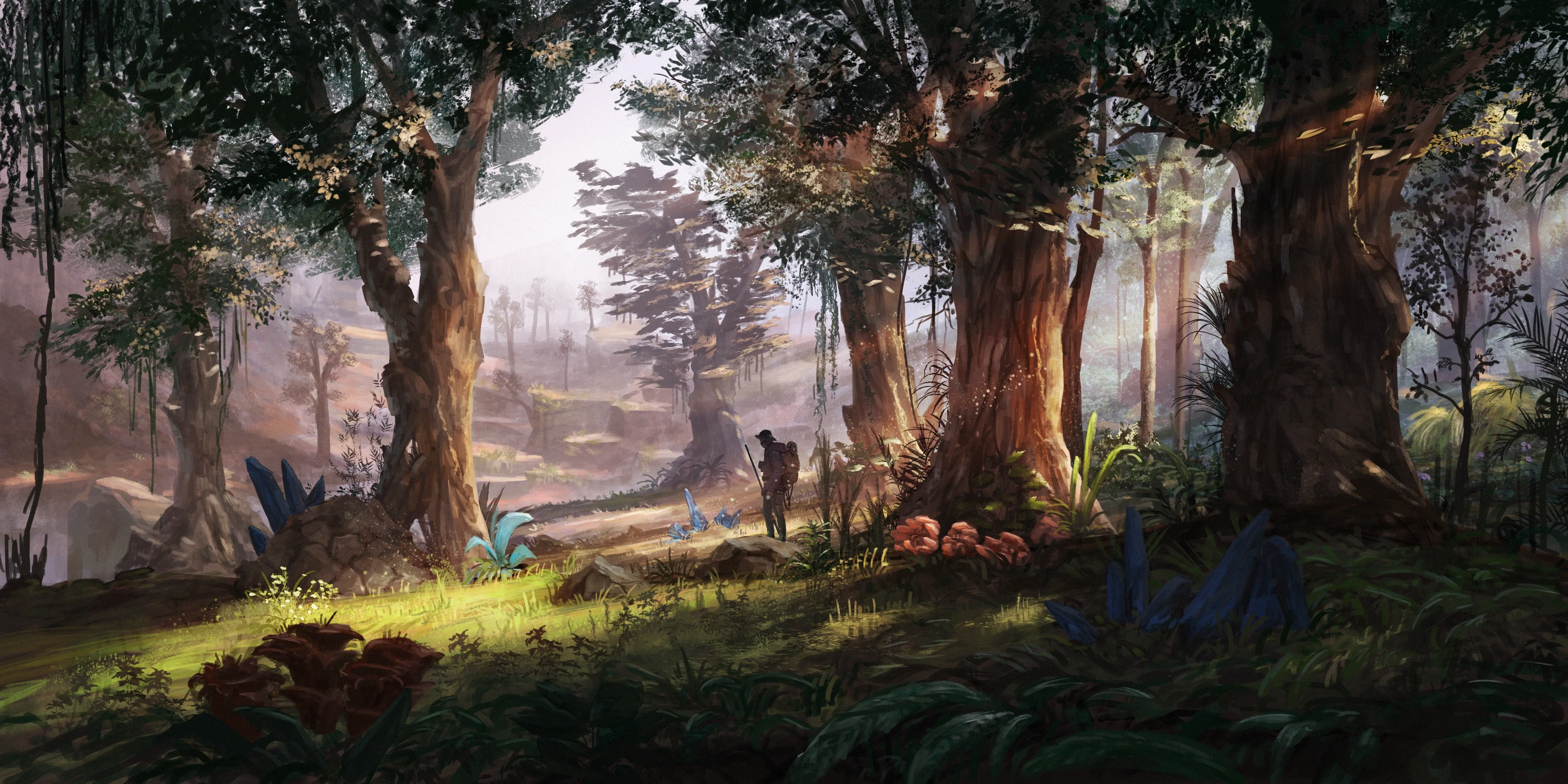 الصياد, الغابة, الشمس, النباتات