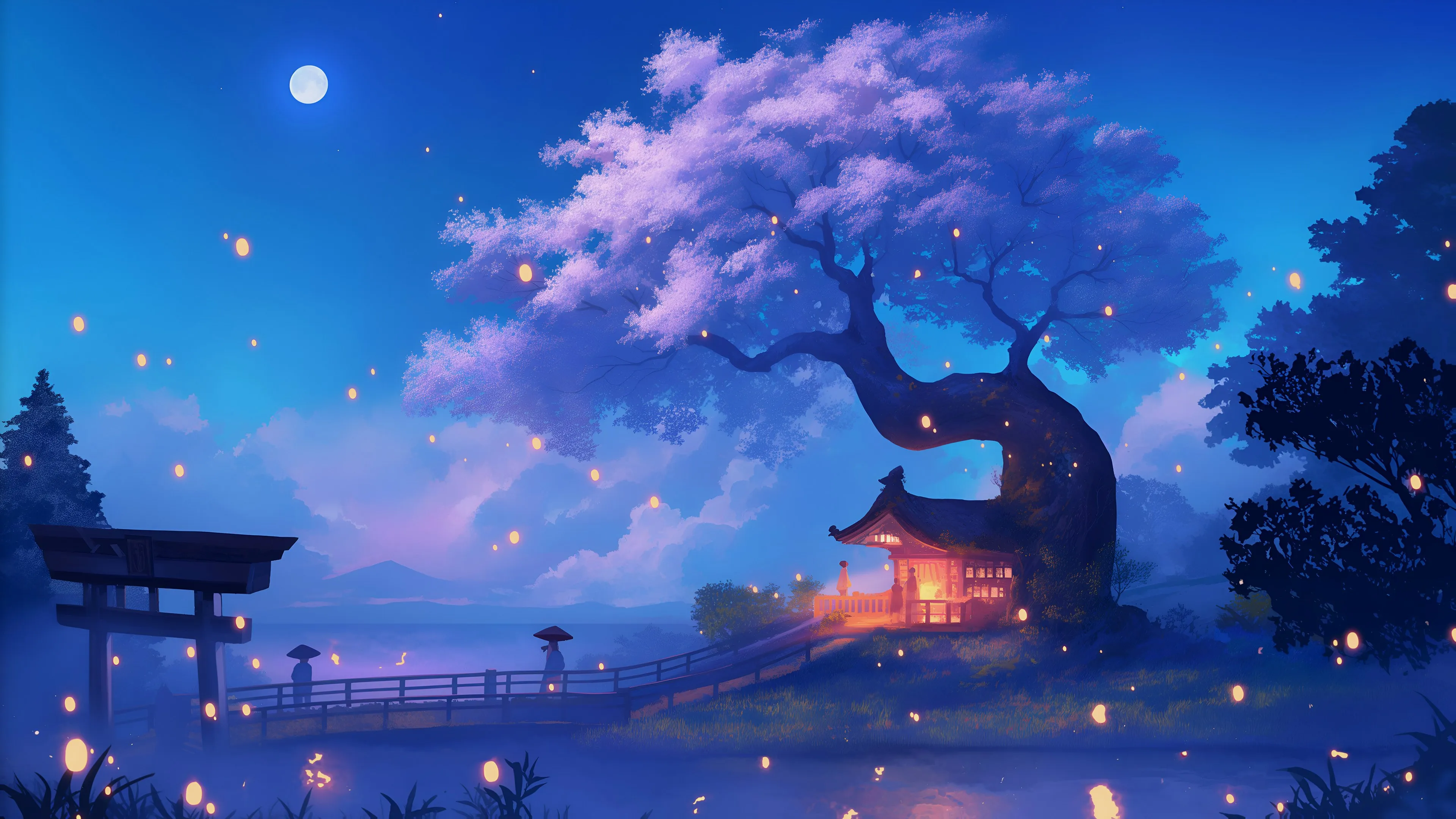 Treehouse, beautiful, moonlight, scenery, 4K wallpaper