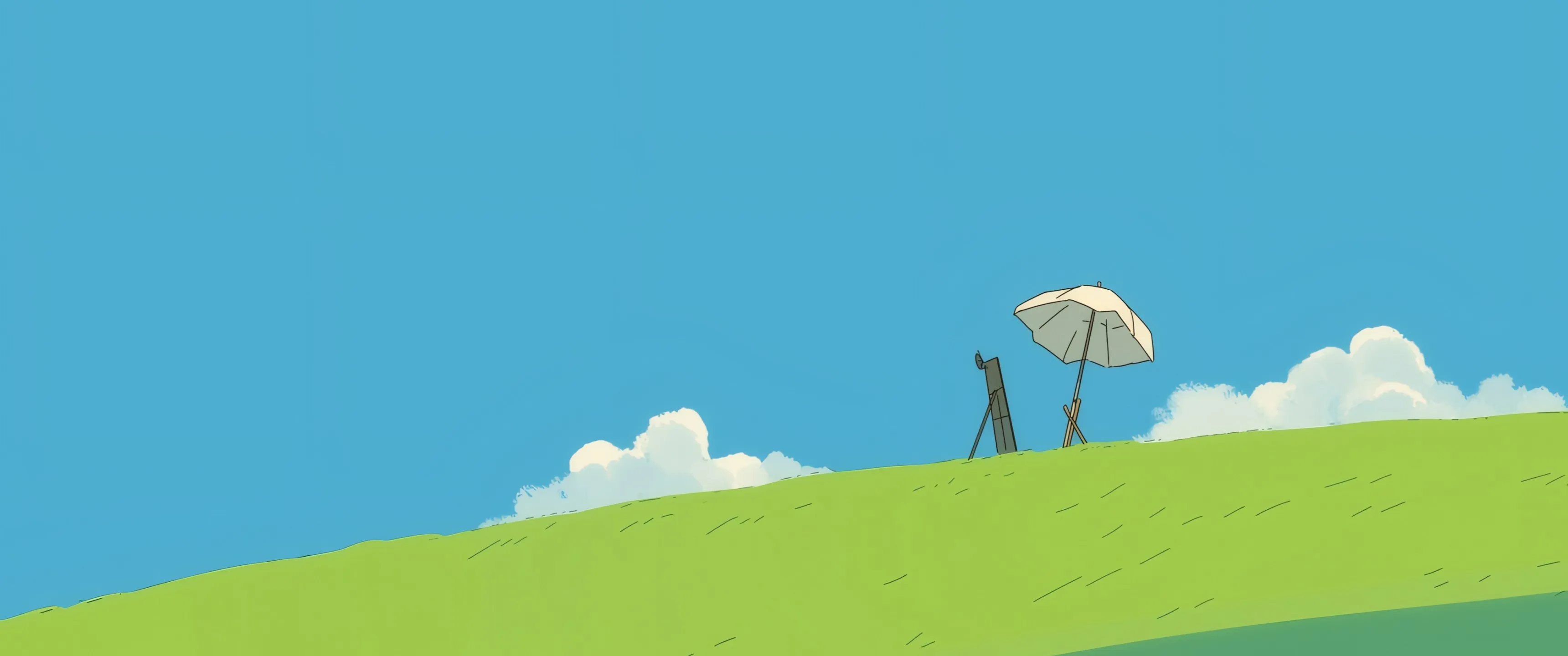 أزرق، عشب، لوحة، مناظر طبيعية بسيطة، شاشة شبه دائرية، ورق حائط 2K