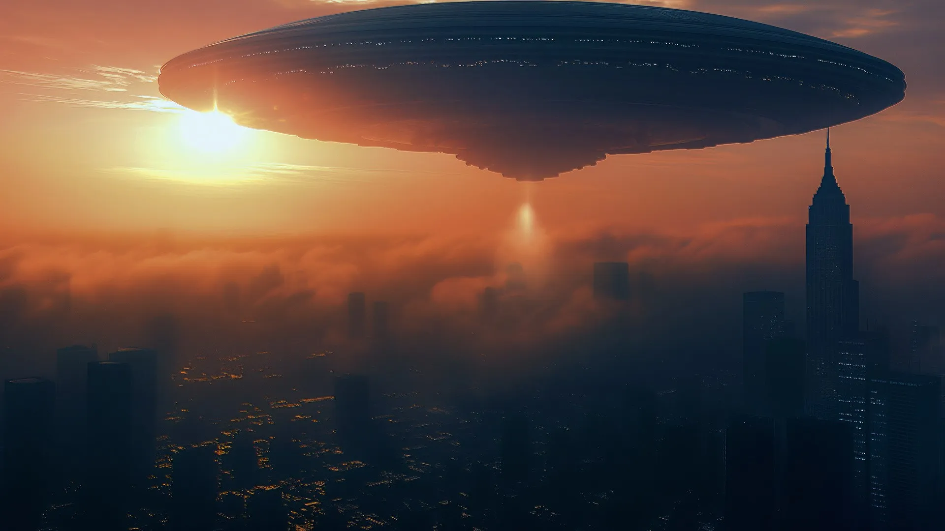 مراكب فضائية، مدينة، فن ذكاء اصطناعي، غروب الشمس، ورق جدران حاسوب، ورق جدران 8K