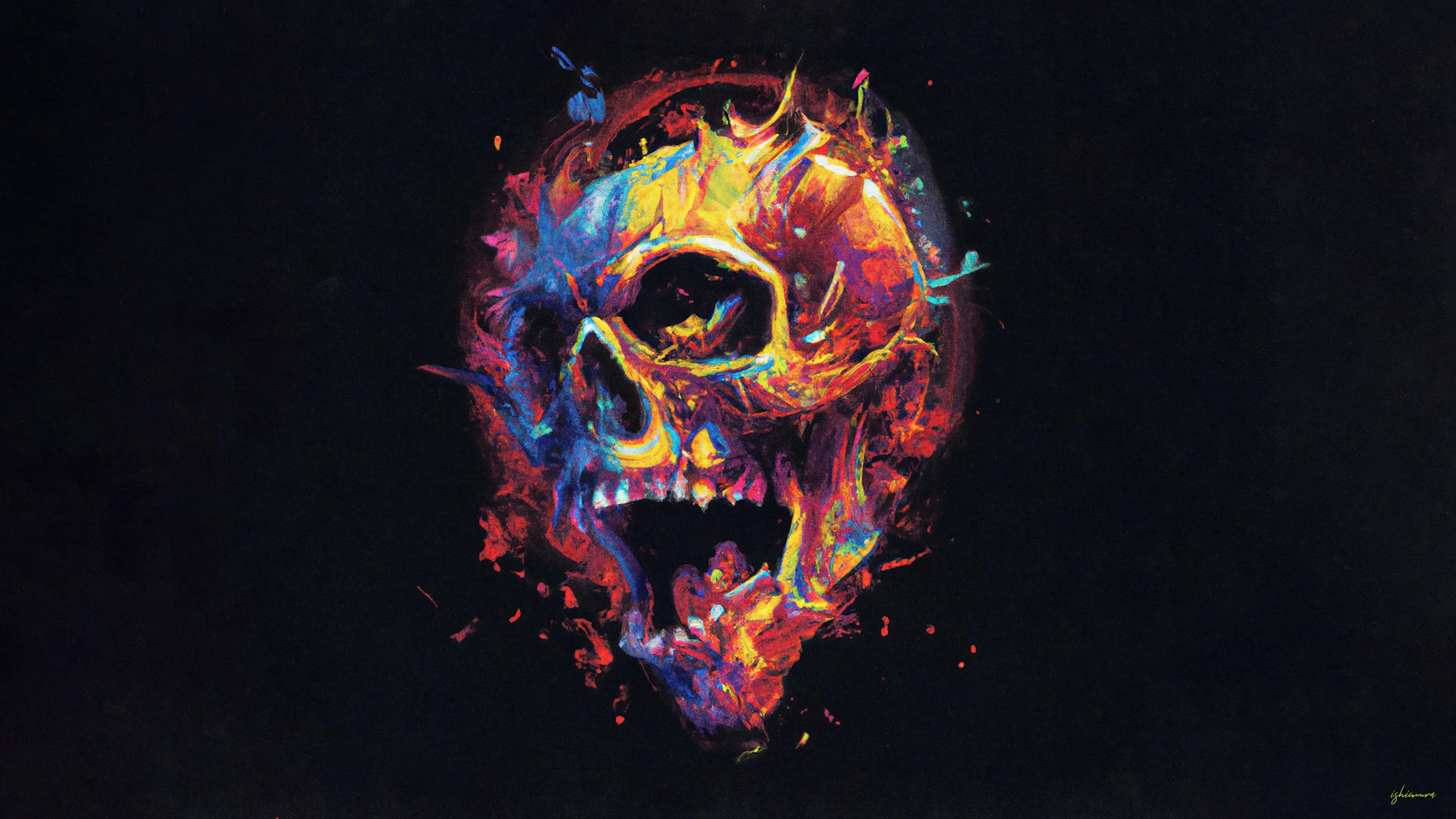 عظم، تجريدي، ملون، أسود، الصورة الأصلية، فن آلي، رسم، رذاذ، تصميم مستوٍ، خلفية بسيطة، فن البساطة، خلفية سوداء، ورق جدران 4K
