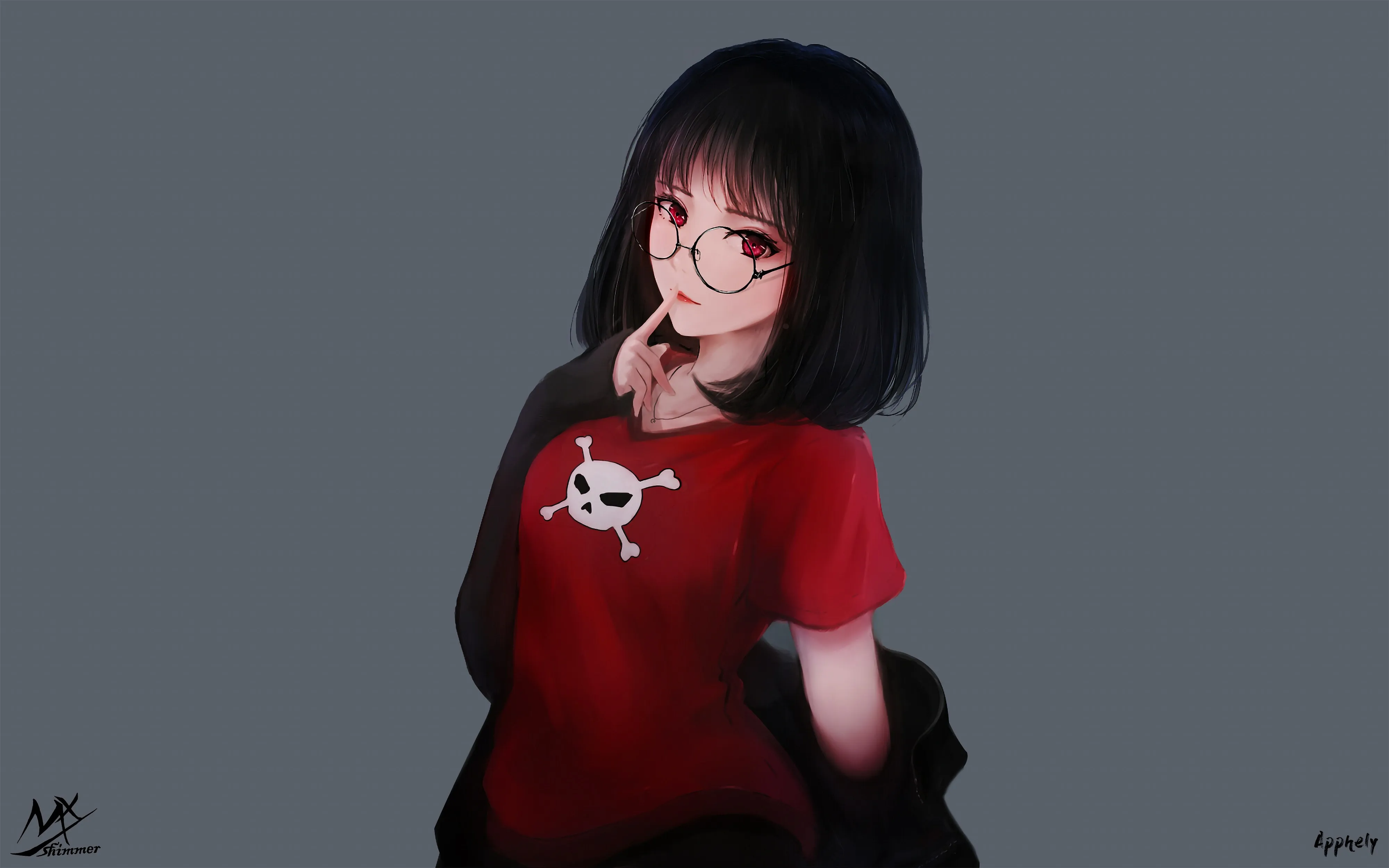 闪光 红眼睿动漫 女孩 眼镜 思耿骷髅 骨骼 恿4K壁纸