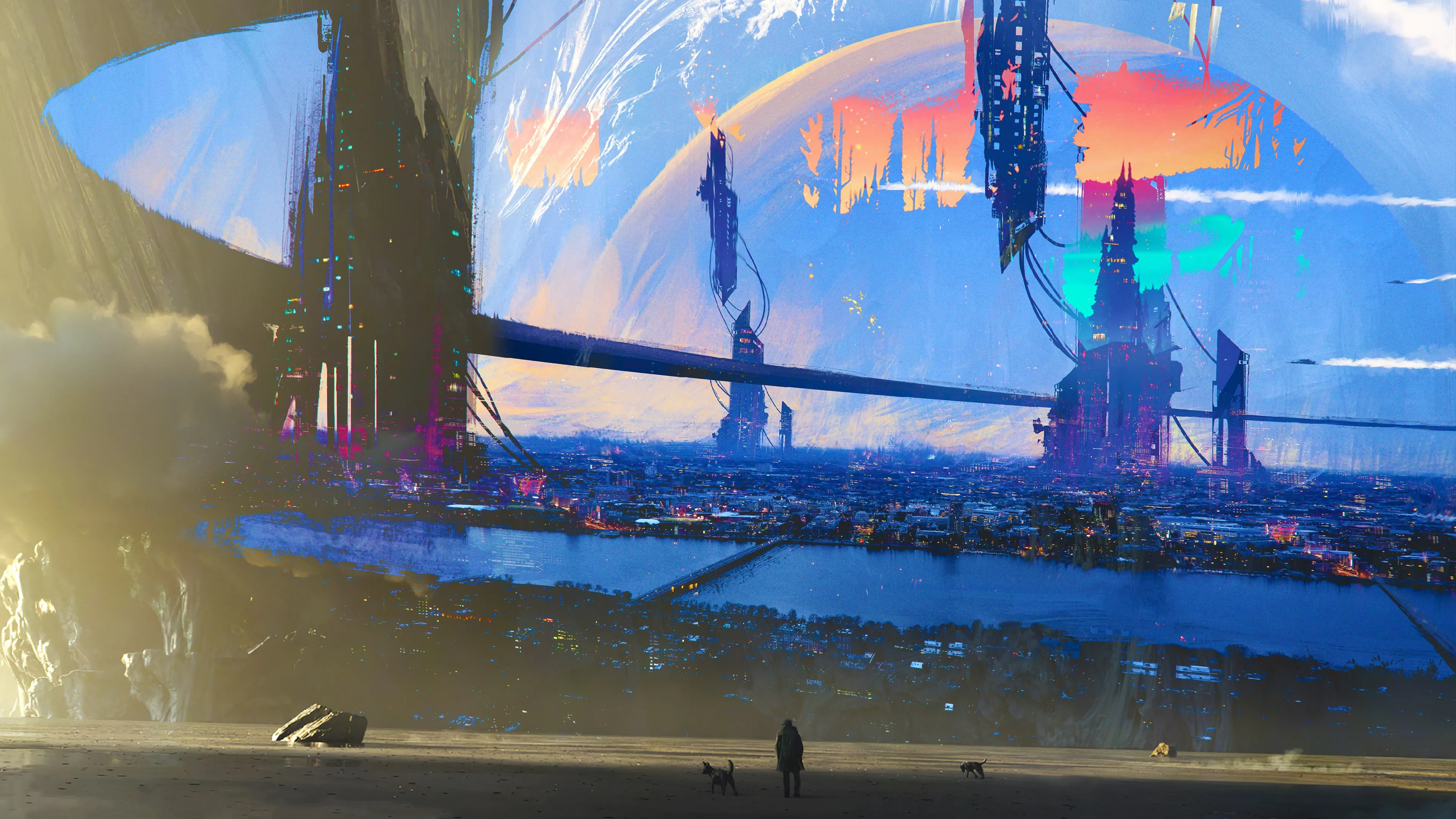تأليف فني ذكاء اصطناعي، عناصر ذكية، فن ذكاء اصطناعي، ورق جدران مواضيع، مناسب لساحة المدينة، ورق جدران مجاني، تأثير بصري متميز