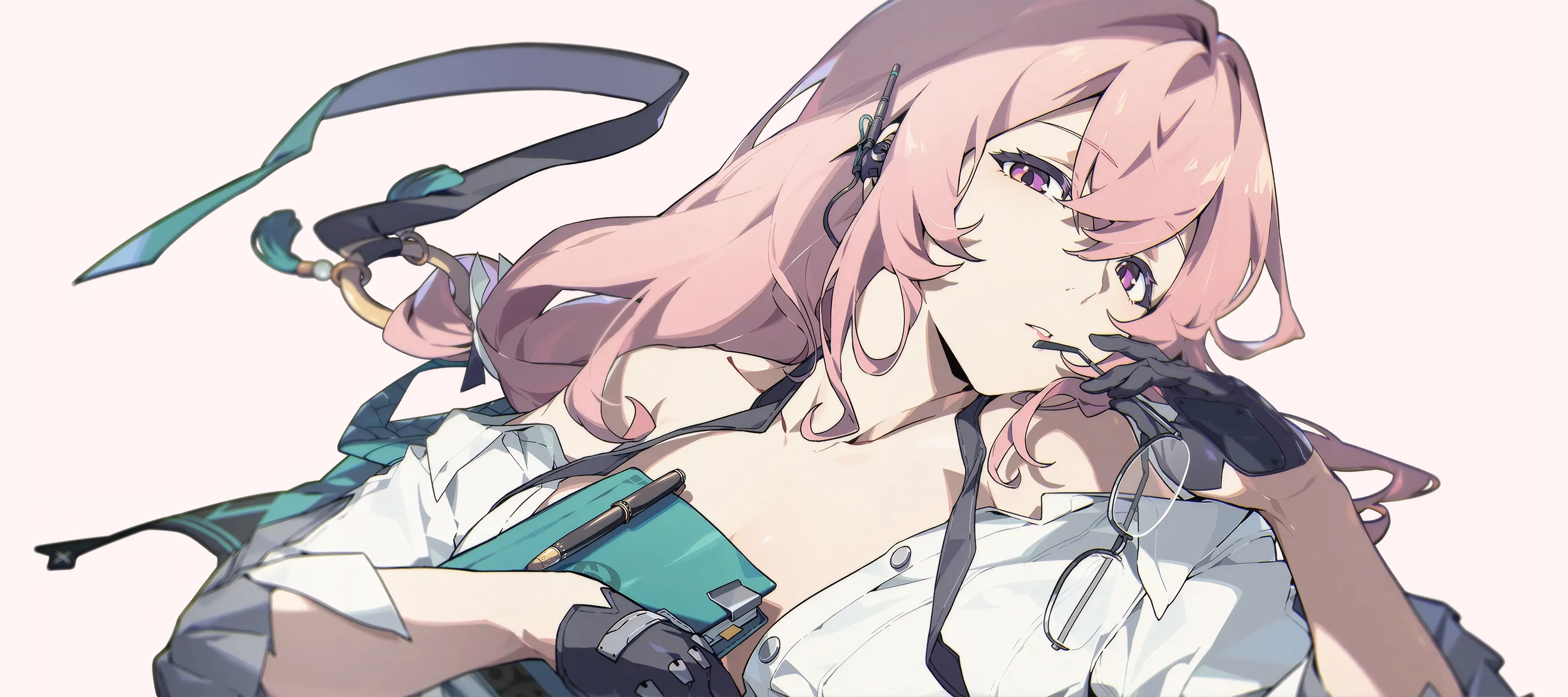 Pink hair, Yuzen, Zenless Zone Zero, Yuzen Tsukiyori, anime, girl, glasses, 4K wallpaper