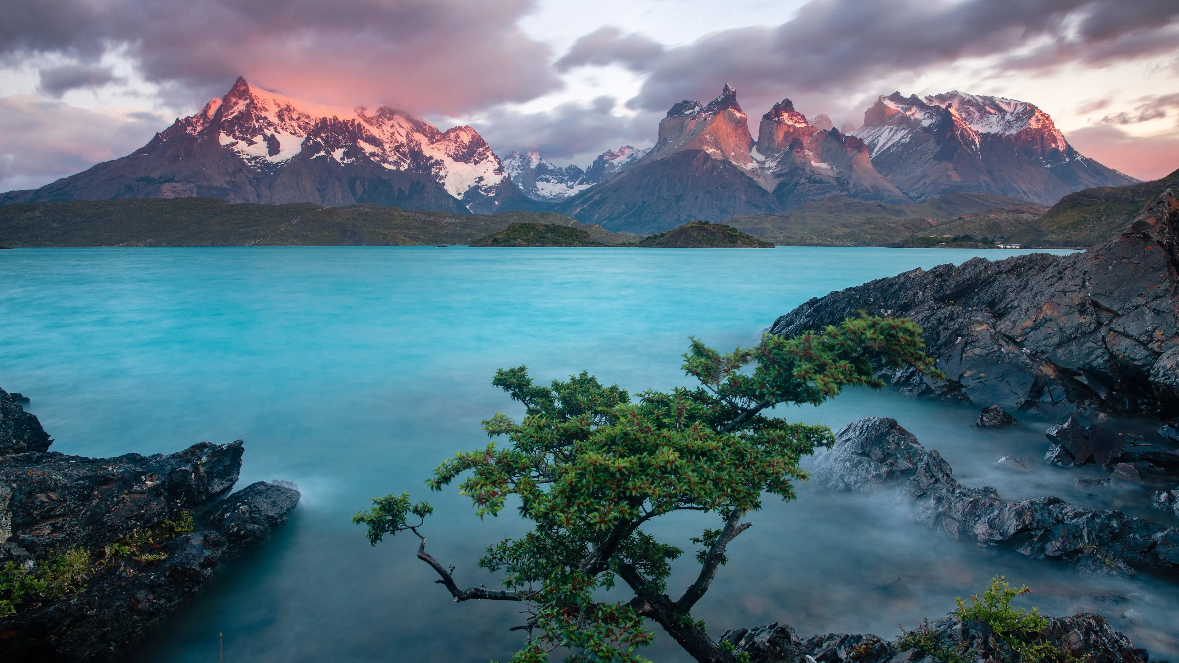 طبيعي، مناظر طبيعية، صخور، ماء، بحيرات، الثلوج، السحب، السماء، الجبال، النباتات، جبال الثلج، ورق جدران 4K