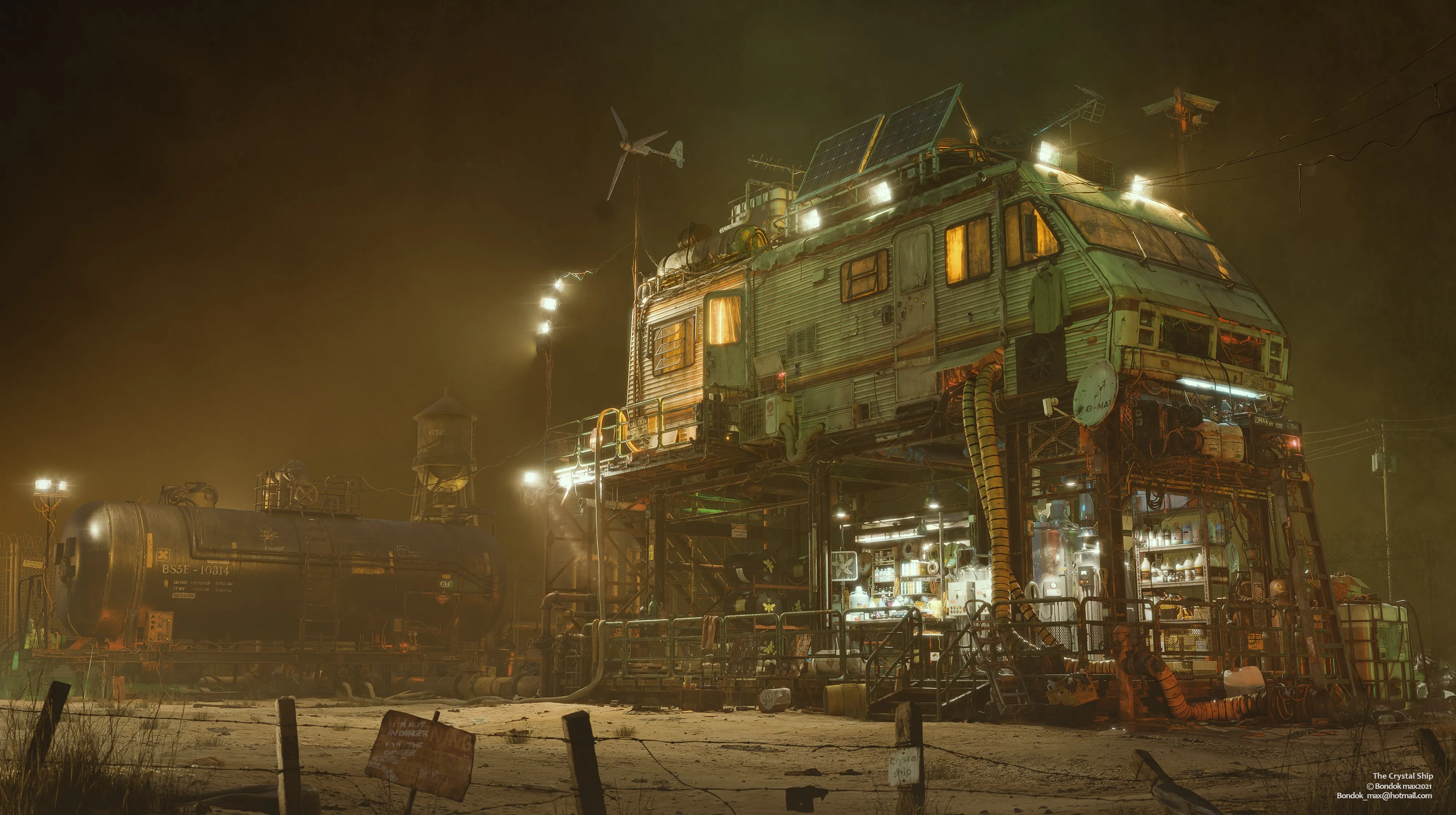 فن آلي، فن خيالي، حاضرة خيالية، سيارات، ليل، نهاية العالم، أنابيب، أسلاك، شاحنة، صندوق، ورق جدران 4K
