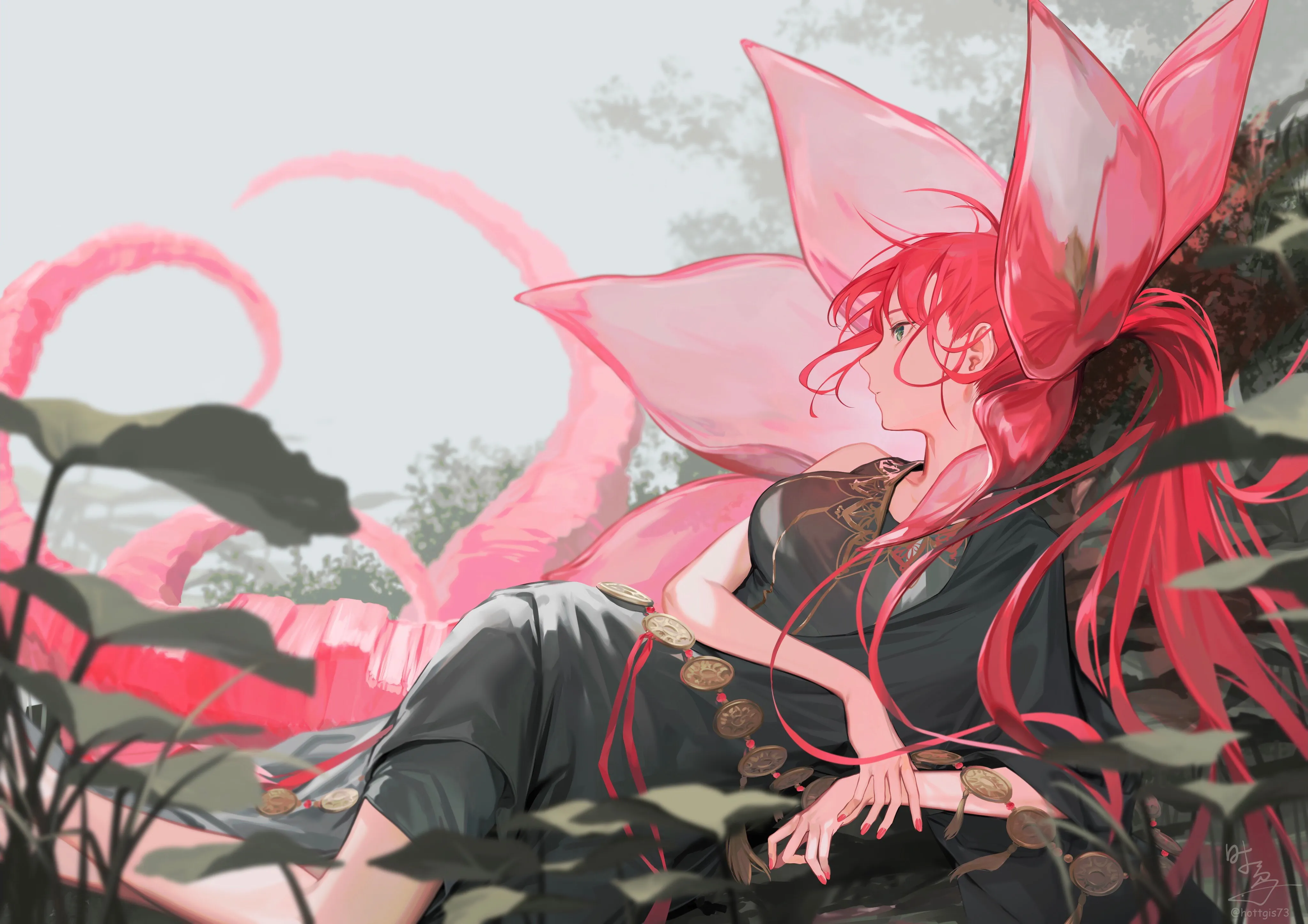Stone Bird, Red Hair, Ponytail, Animation, Girl, Dress, 4K Wallpaper