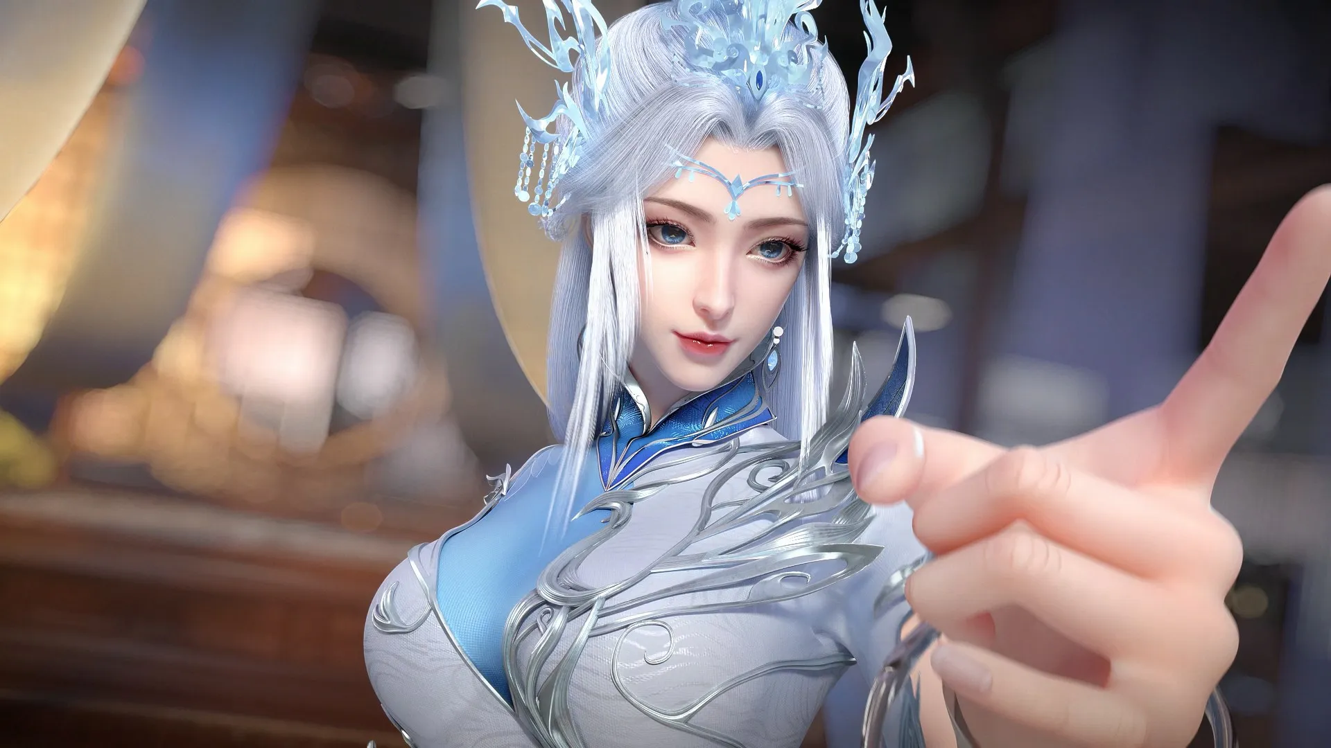 شعر فضي، حجاب أزرق، إصبع، فتاة كرتونية، كرتون، شريط حاسوب، شريط 4K