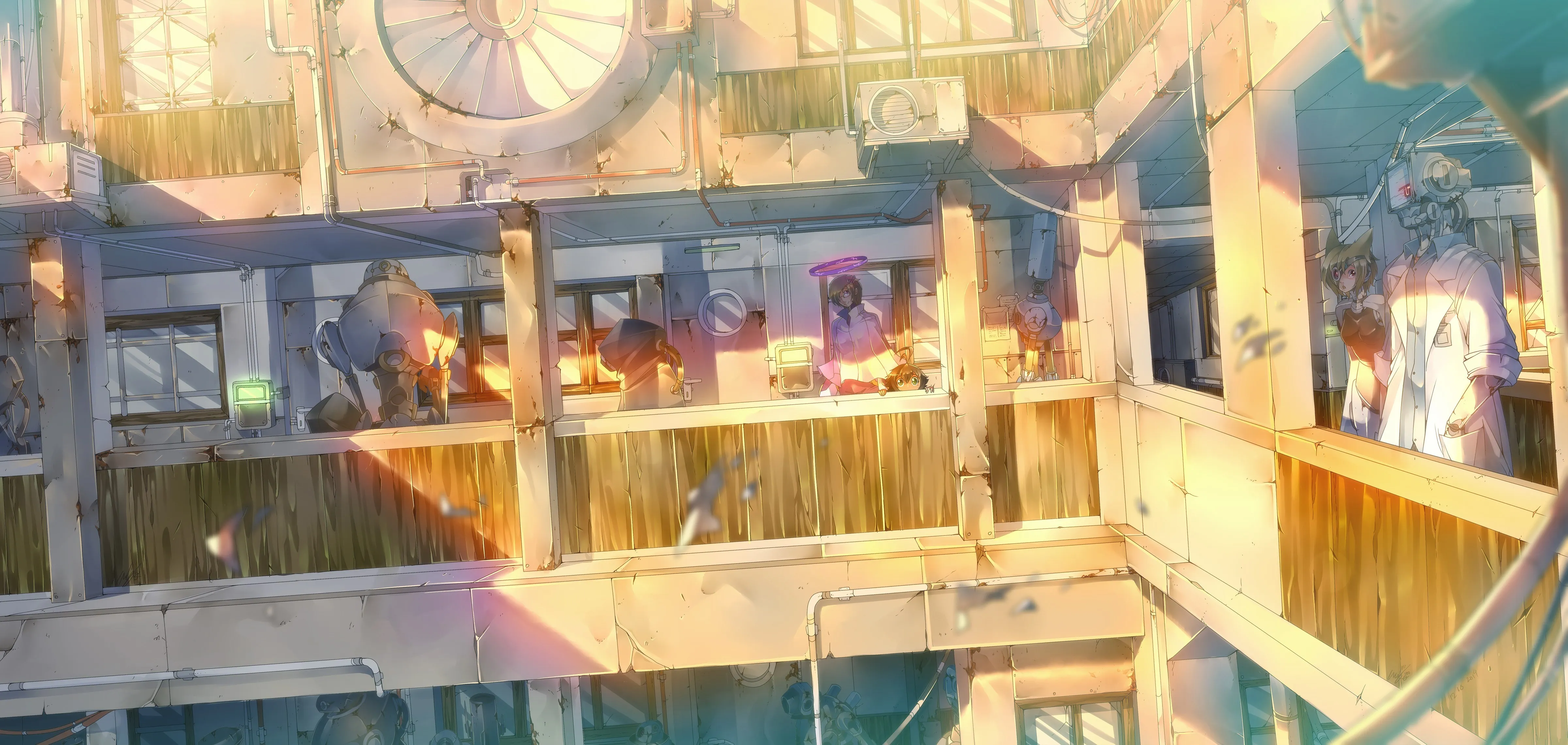 دور, أنمي, فتاة, روبوت, بناء, مستقبل, ورق جدران كمبيوتر, ورق جدران 4K