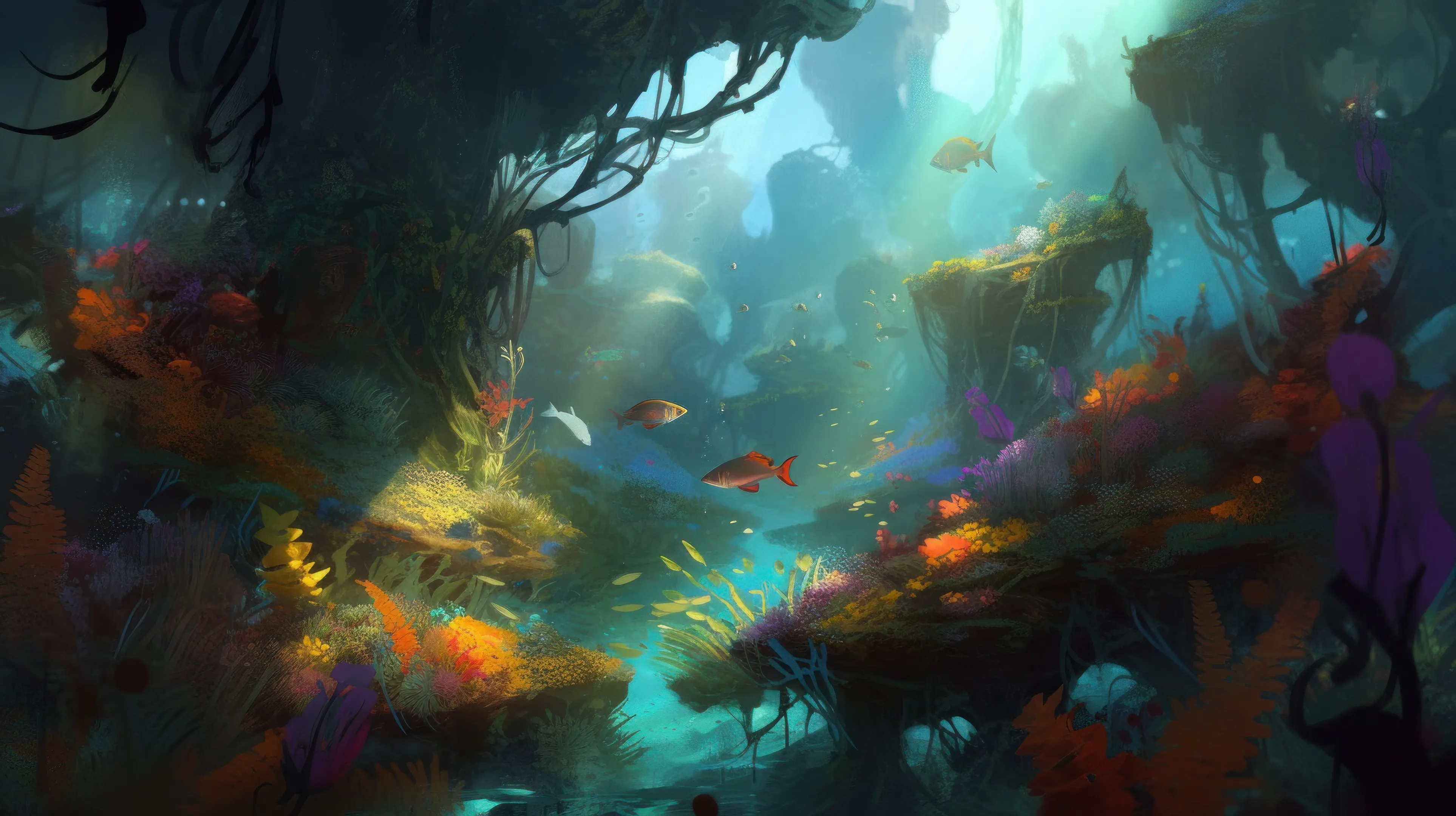 Scenery, planet, water, colorful, fish, sunlight, animals, computer wallpaper, 4K wallpaper