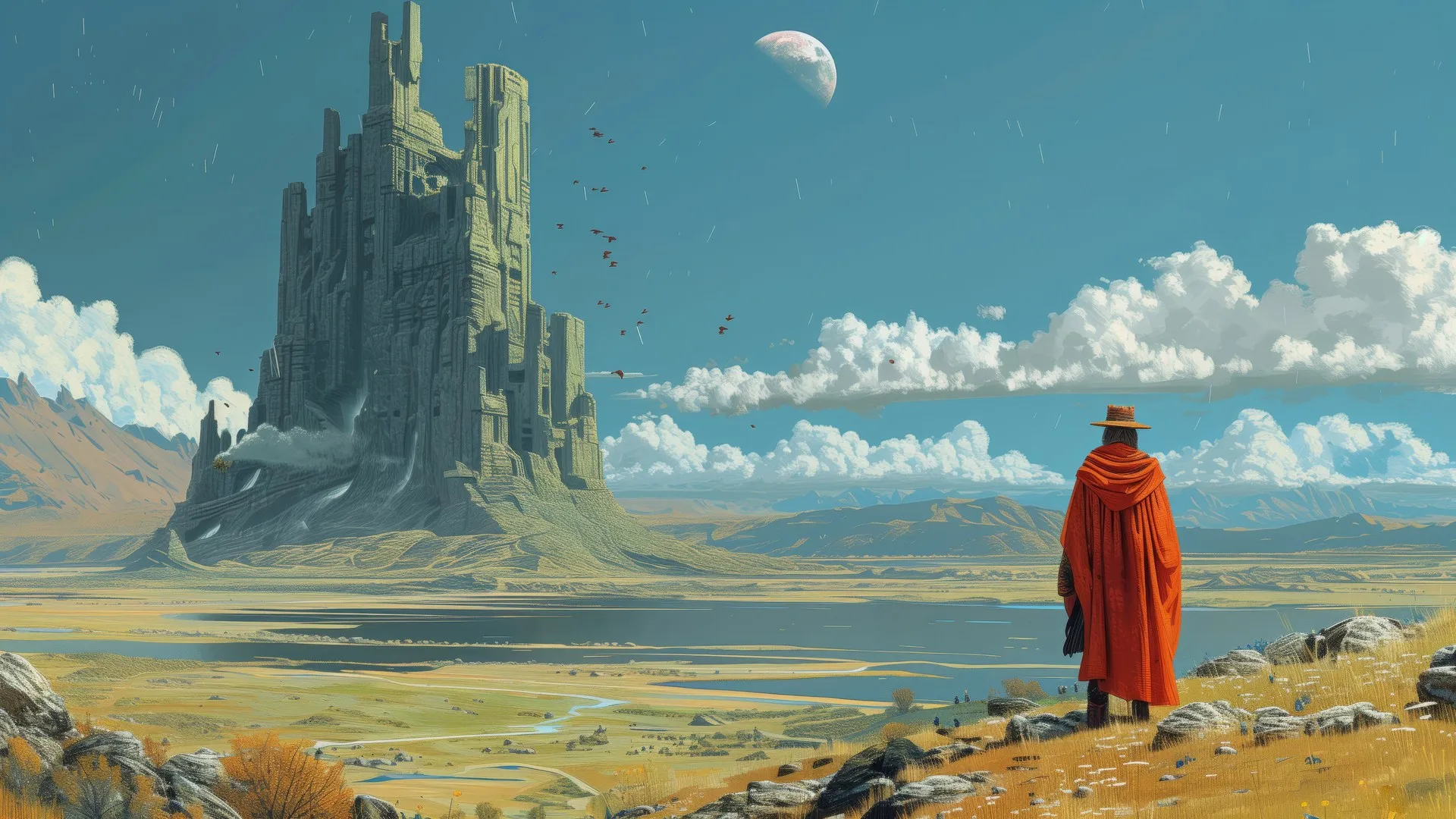 سحابة قلعة فن خيالي مفهوم صحراوي فن ورق حاسوب 4K ورق حائط