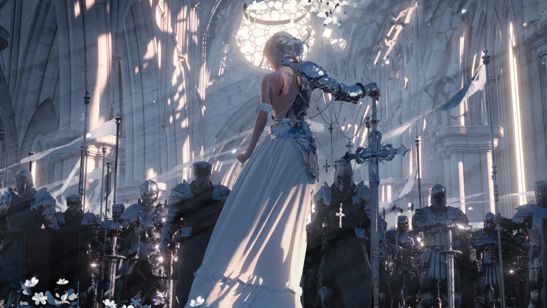盔甲 剿武器 十字枿斑点阳光 白色连衣裿电脑壁纸 4K壁纸