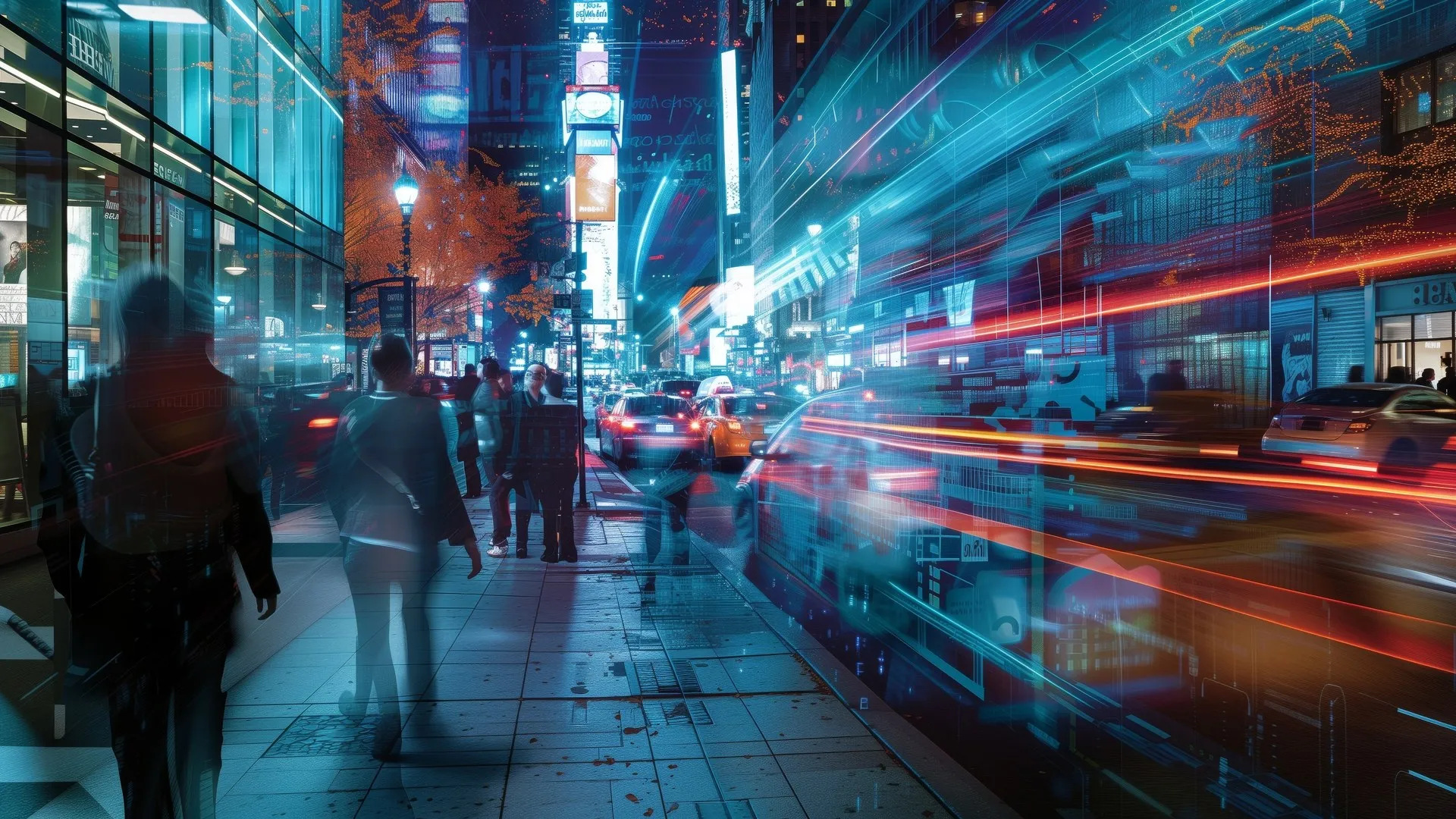 فن آلي، مدينة، شوارع، ممر طويل، ممر للسير، شوارع مشغولة، الليل، ورق جدران حاسوب، ورق جدران 4K