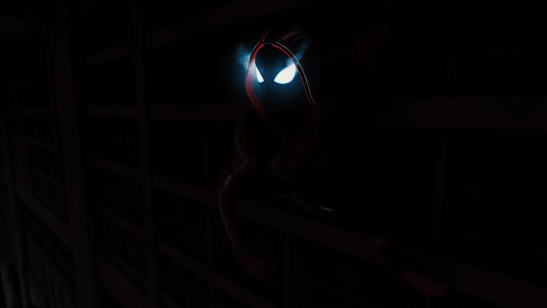 صورة شاشة لسوبرمان ماي尔斯 موراليس، سوبرمان، ظلام، رسوم حاسوبية في اللعبة، عيون مضيئة