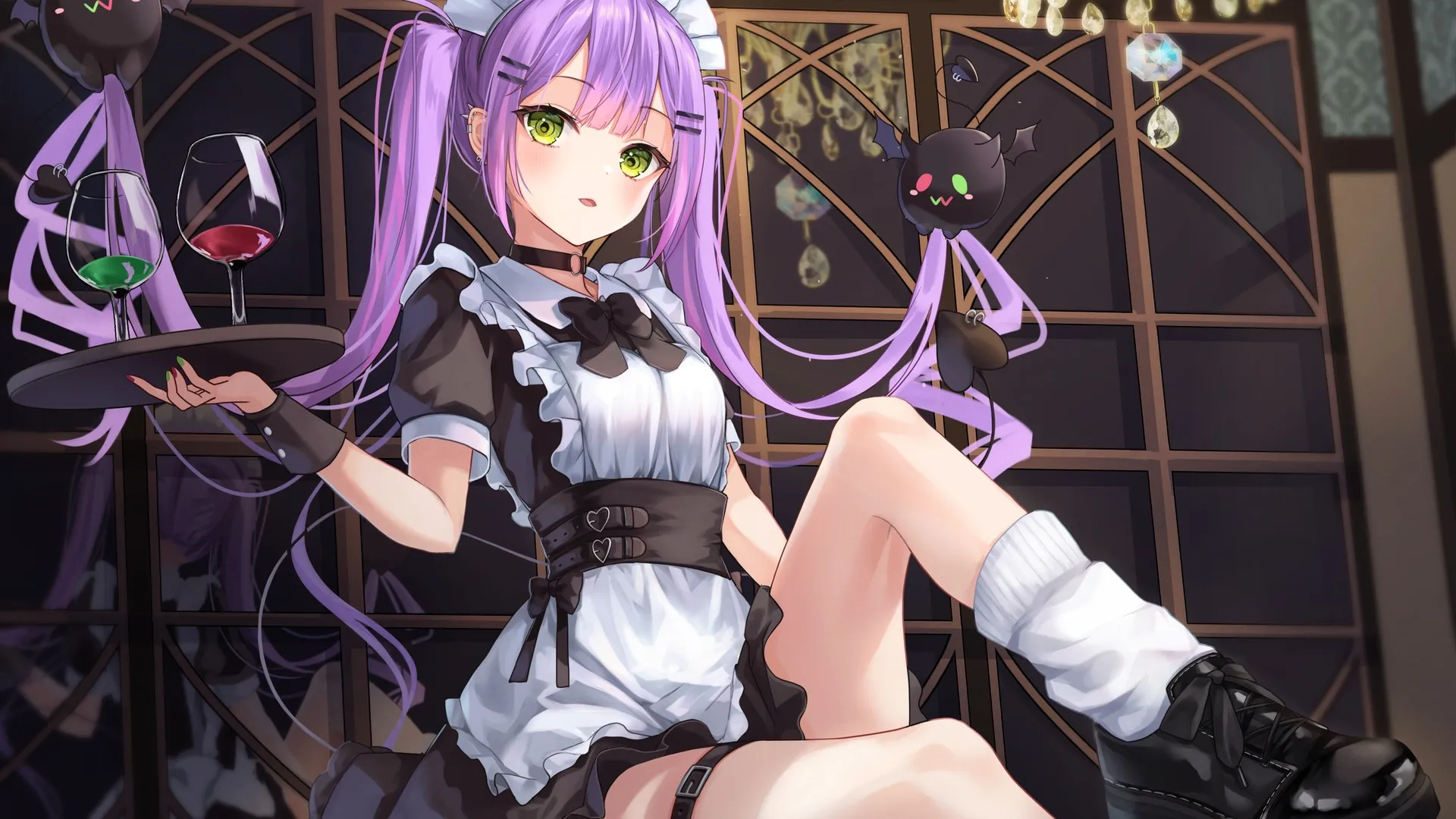 شعر طويل، شعر أزرق، عيون خضراء، غناء فردي، ساحرة، أنمي، فتاة أنمي، خلفيات سطح المكتب، خلفيات 4K