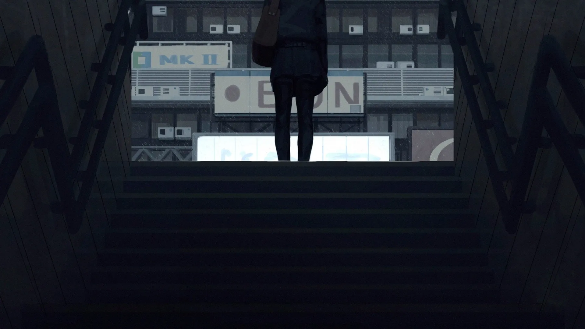 火车 动漫女孩 楼梯 背包 电脑壁纸 8K壁纸