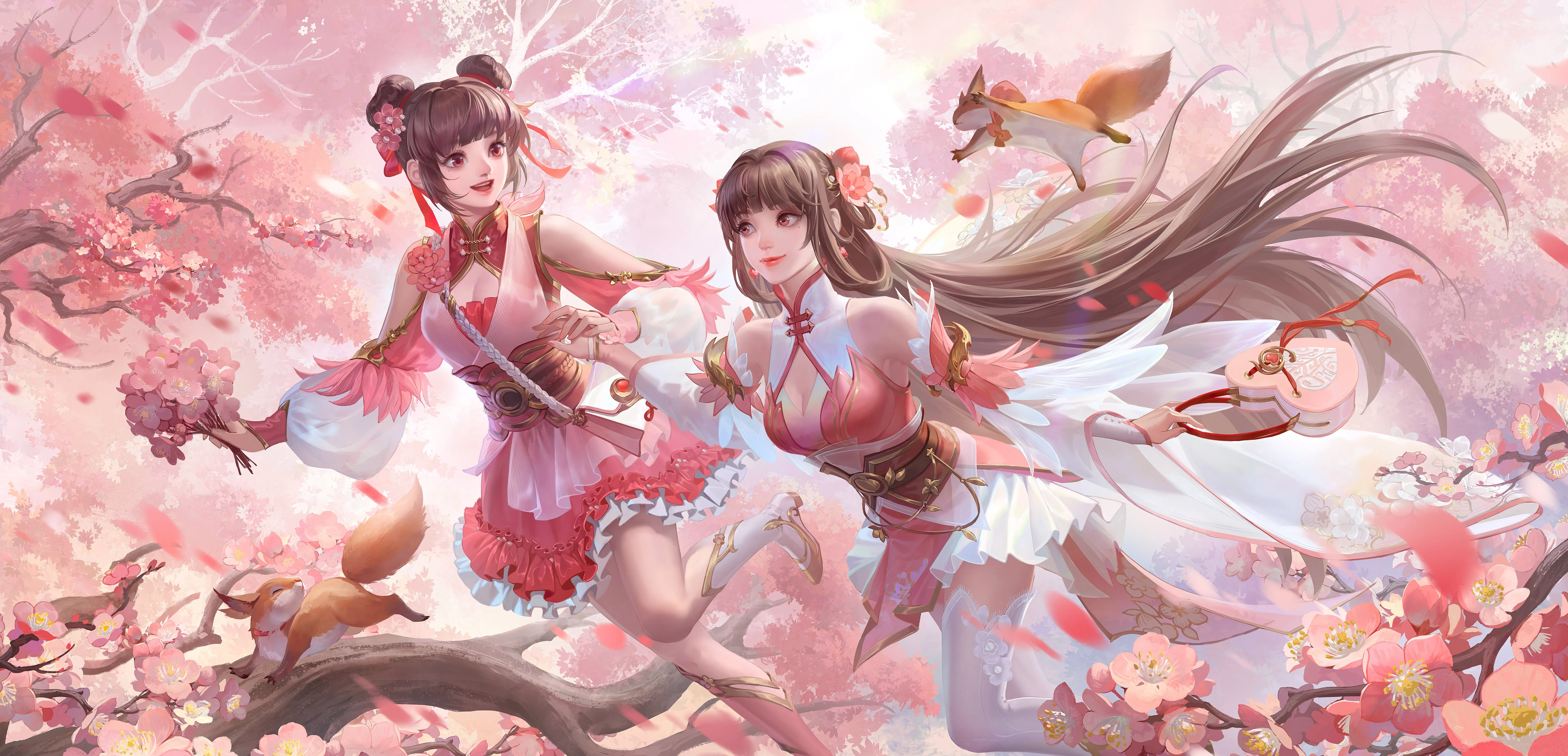 شخصيات اللعبة، فتاة، رومانسية، وردية، شعر طويل، لولي، ورد، حيوان، ورق جدران حاسوب، ورق جدران 4K