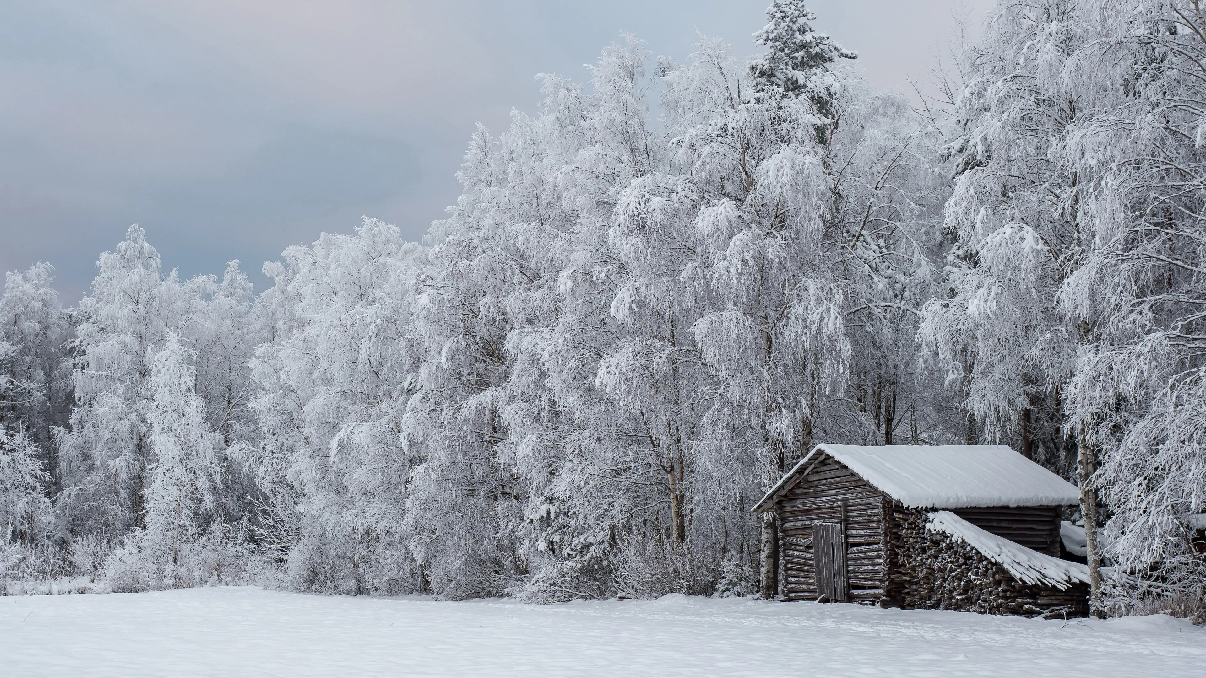 طبيعي شتاء ثلج بارد خارجي شجيرات بيت 4K خلفية