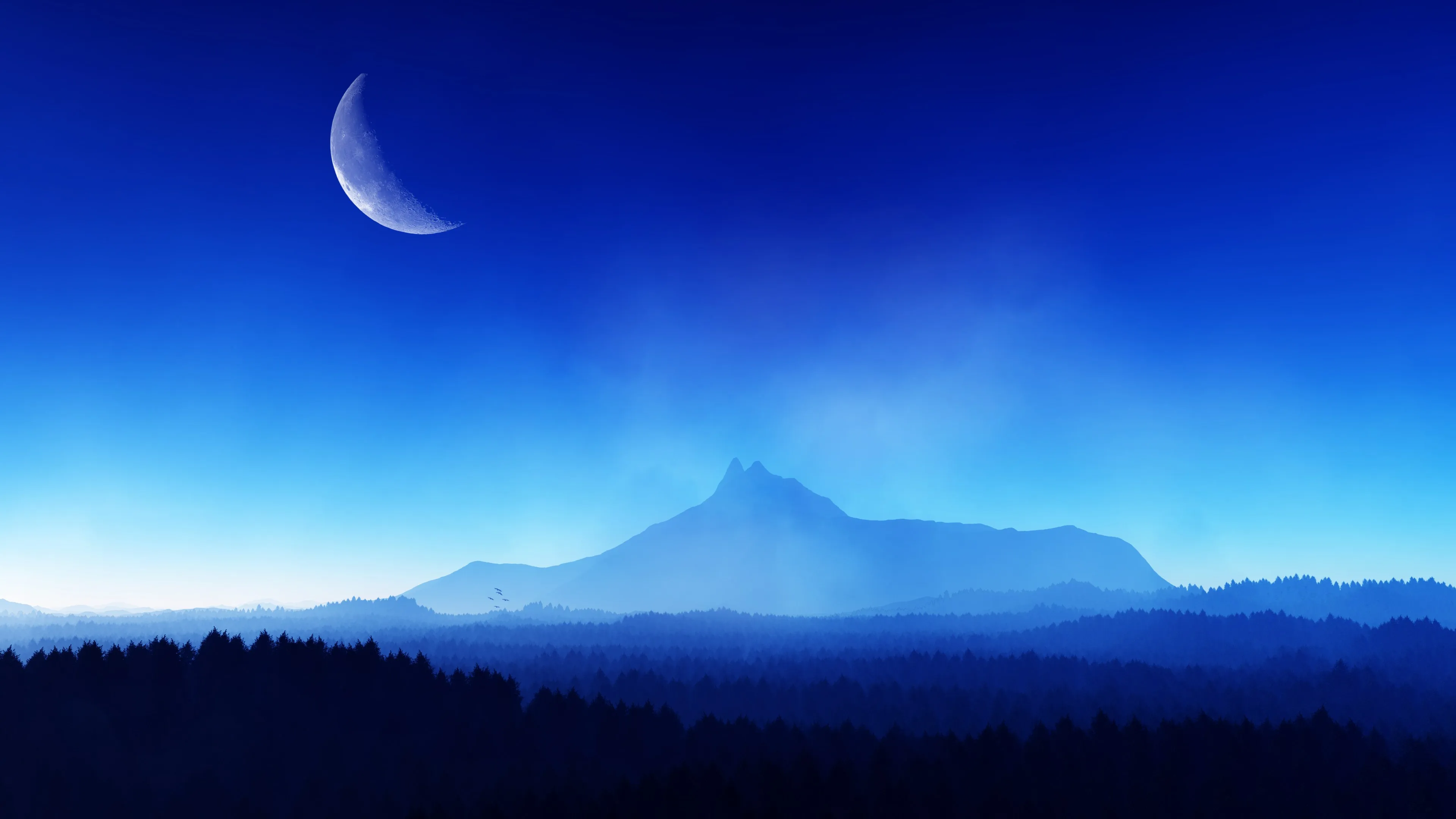 صور منومة,فن ذكاء اصطناعي,صور,رسومات,مناظر طبيعية,سماء,قمر,جبال,طبيعة,غابات,أزرق,4K Wallpapers