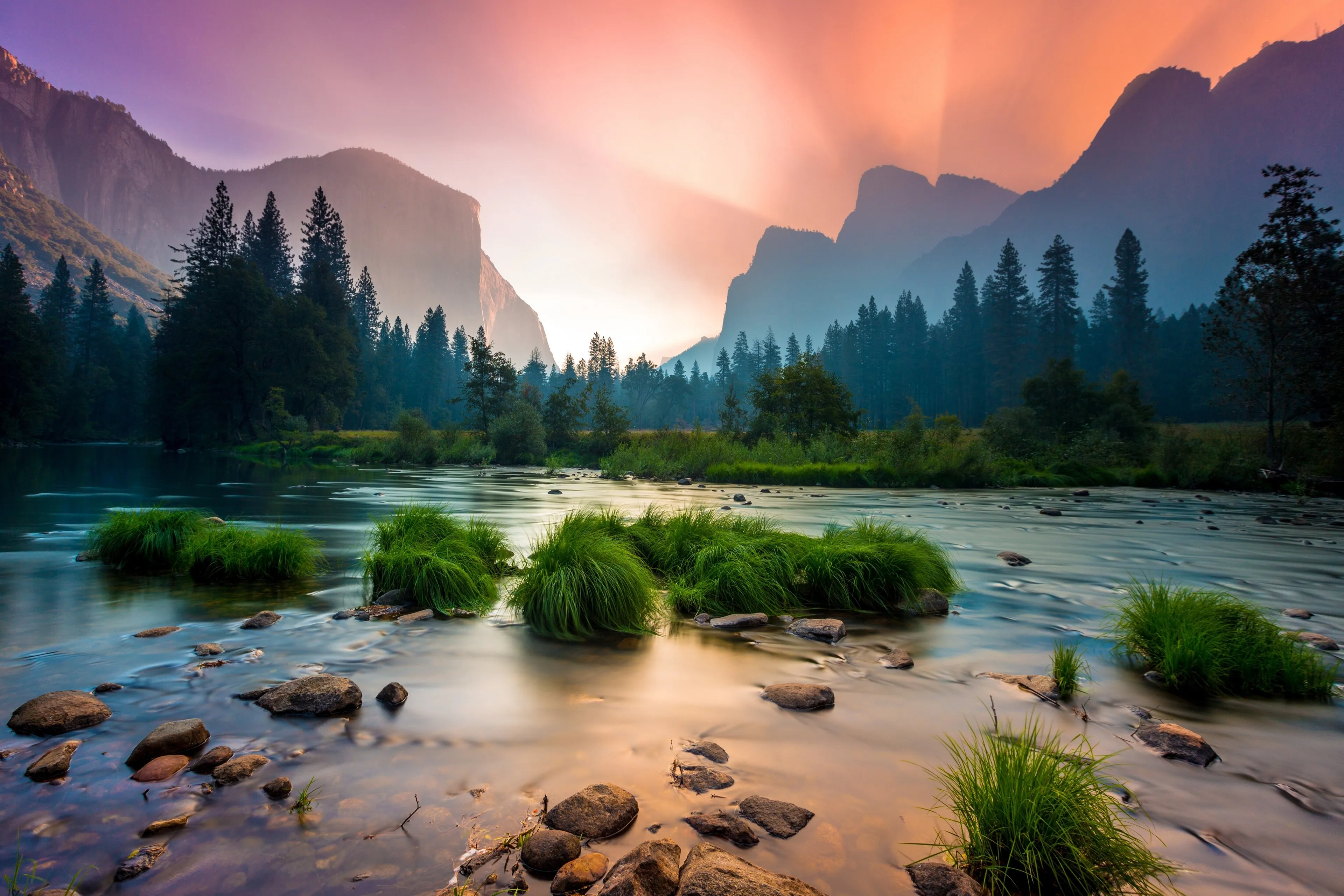 حديقة سماء جبال أنهار شجيرات مناظر طبيعية غروب الشمس الطبيعة سطح المكتب壁纸 4K壁纸