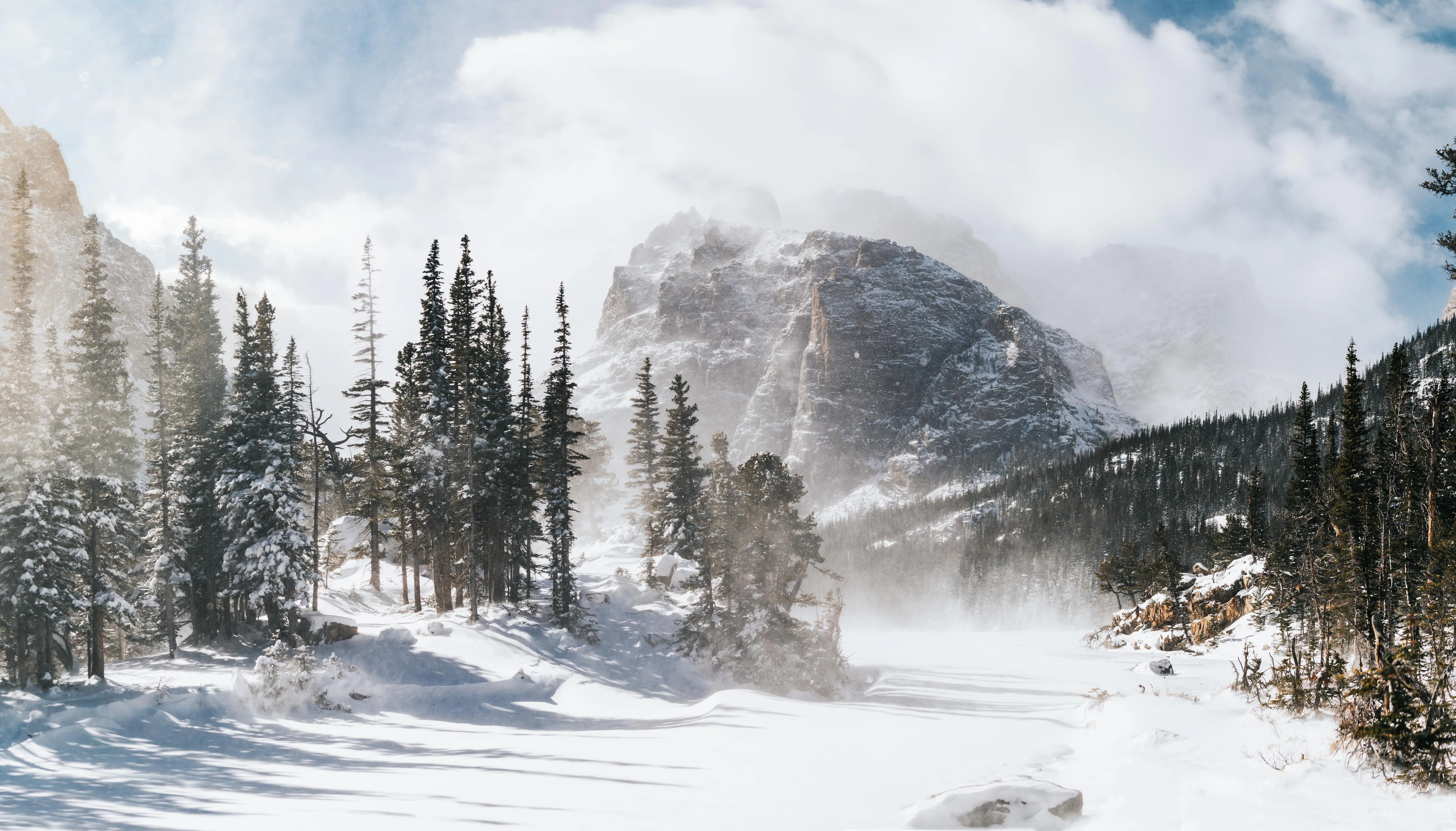 طبيعي مناظر طبيعية شتاء ثلج ضباب جبال شجر خلفيات سطح المكتب 4K خلفيات عالية الدقة