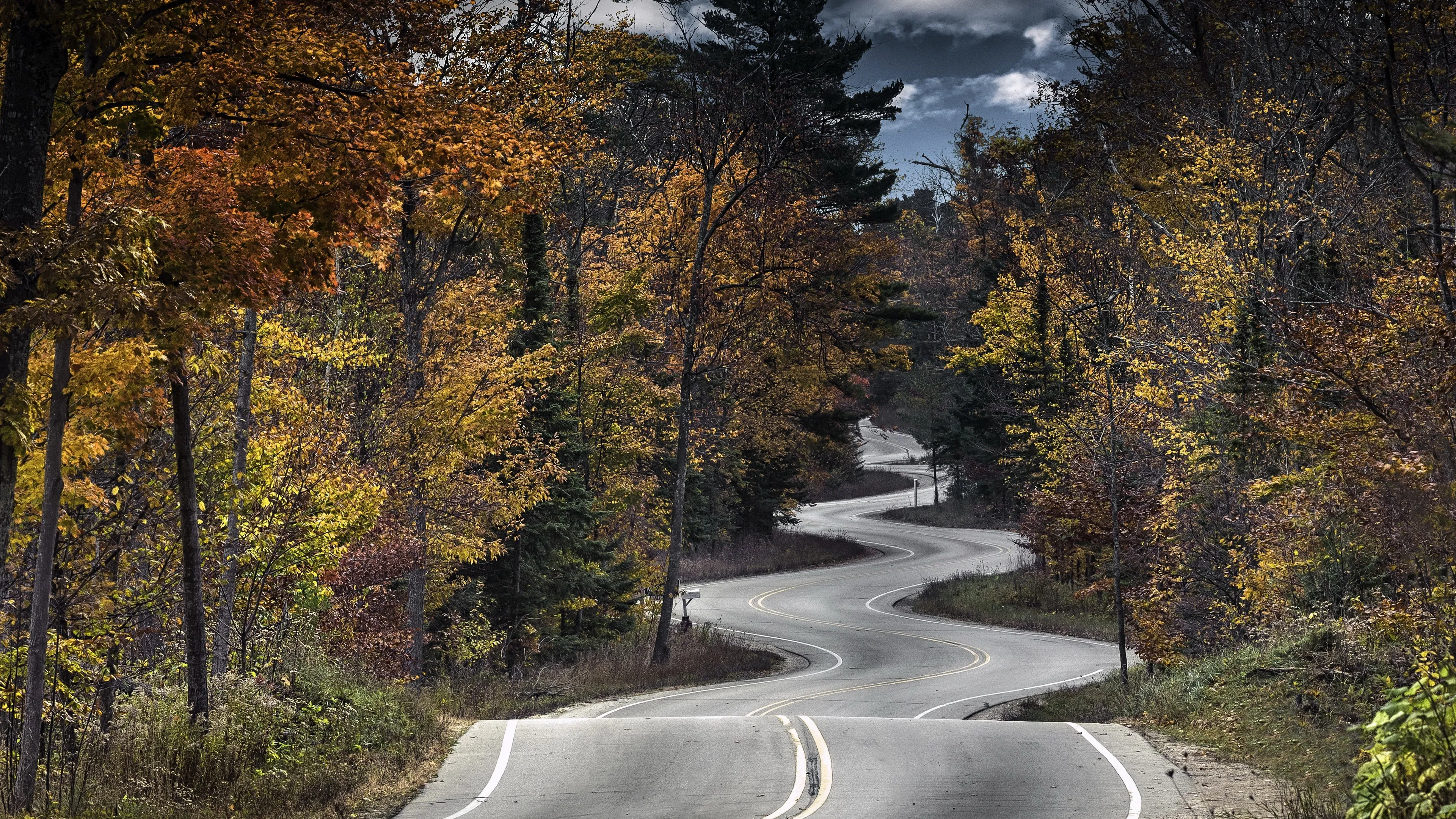 طبيعي شجرة طريق غابة خريف أوراق سطح مكتب wallpaper 4K wallpaper