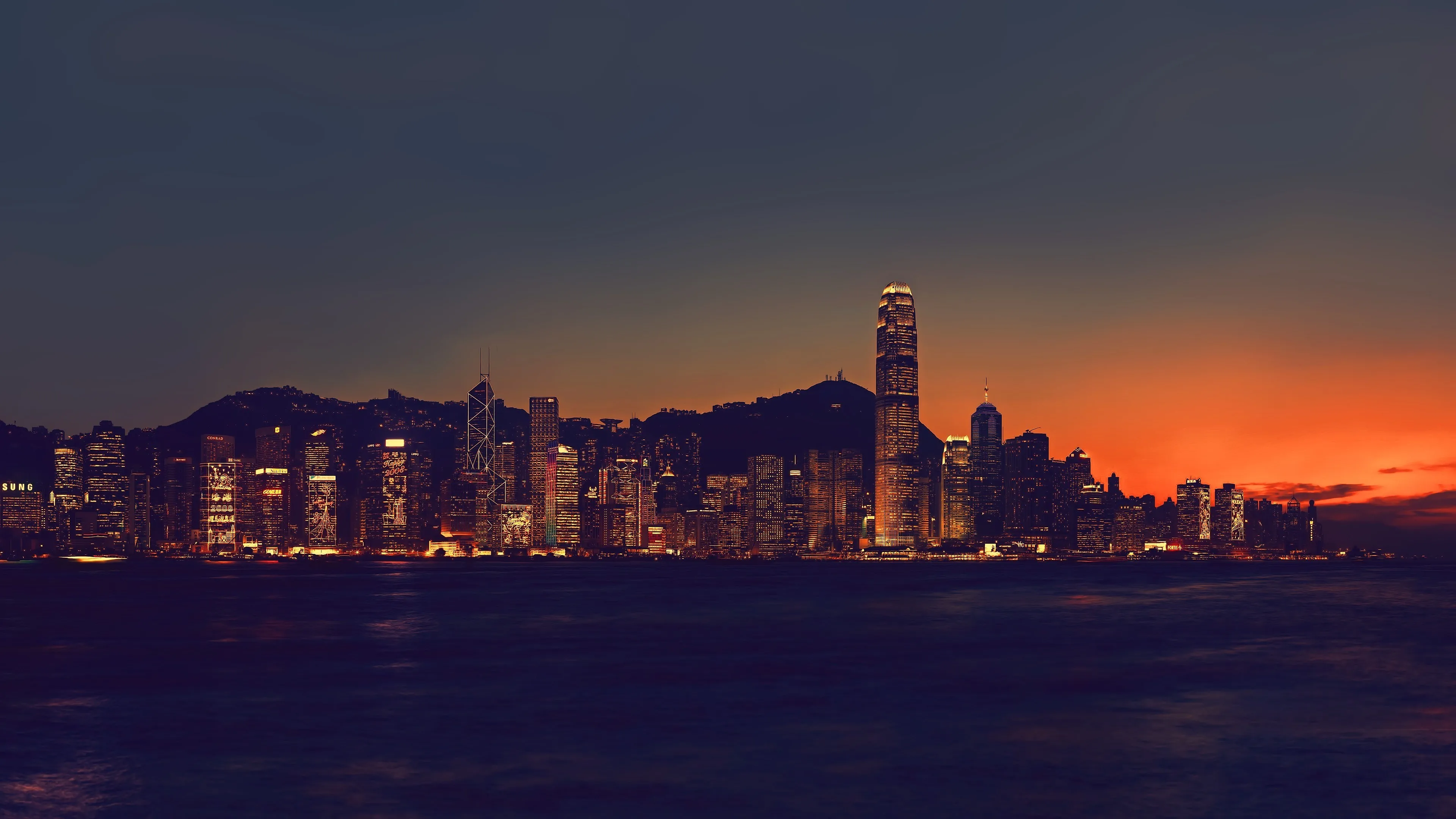 مدينة، هونغ كونغ، خطوط السماء، الصين، إضاءة المدينة، مناظر طبيعية المدينة، آسيا، ورق حائط كمبيوتر، ورق حائط 4K