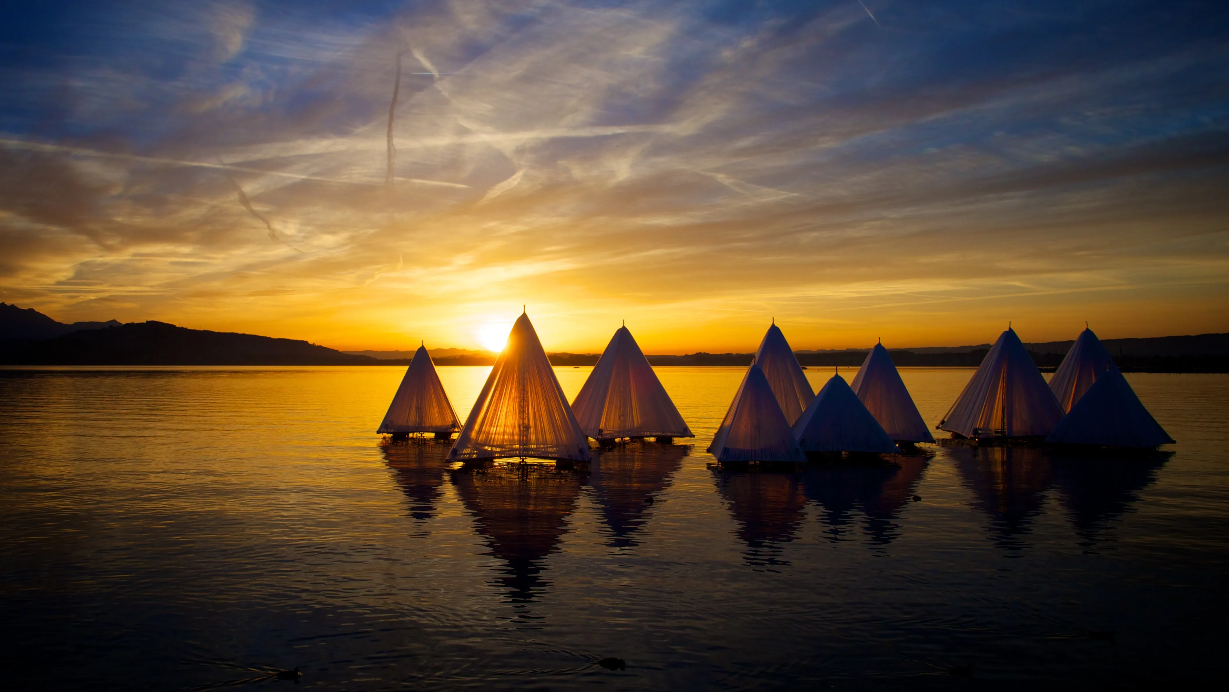 بحيرة الشمس الجبل الماء ضوء الشمس غروب الشمس ورق حائط الحاسوب 4K ورق حائط