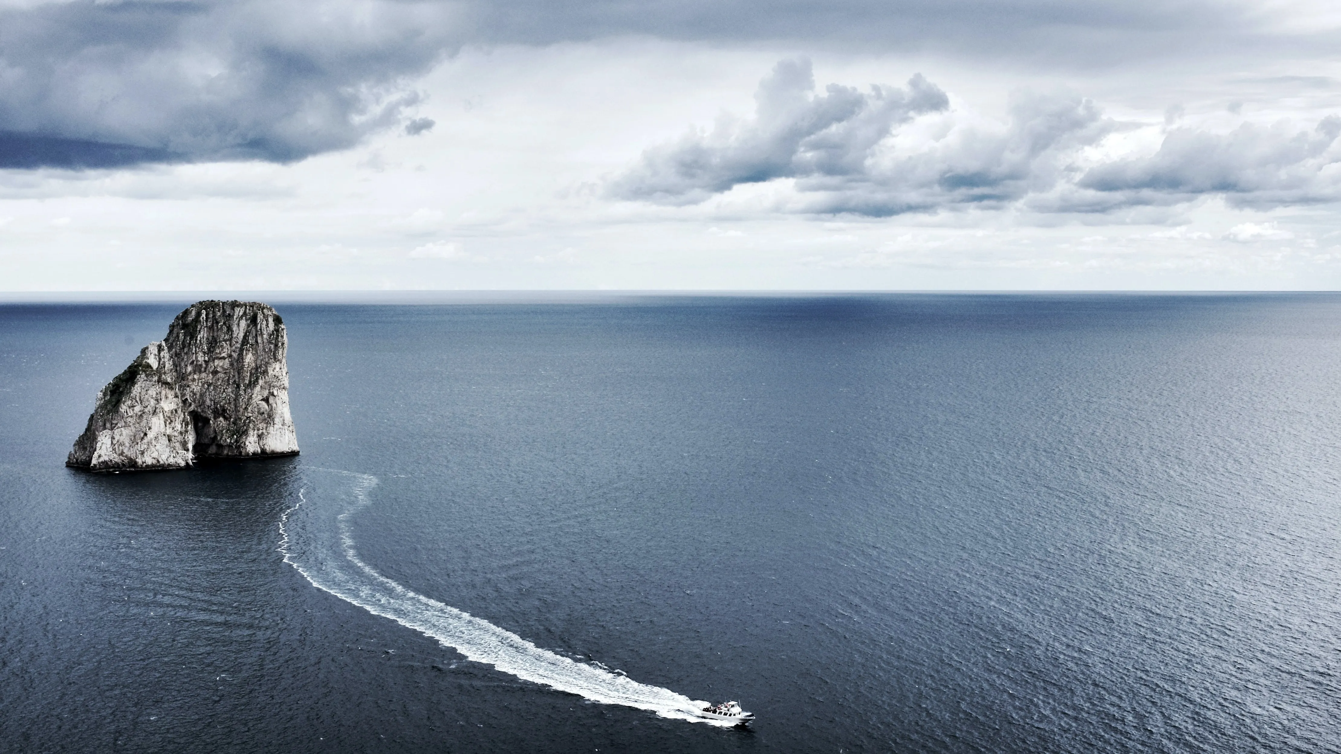 السفينة, الصخرية, البحر, السحب, الأمواج, خلفيات الحاسوب, 4K خلفيات