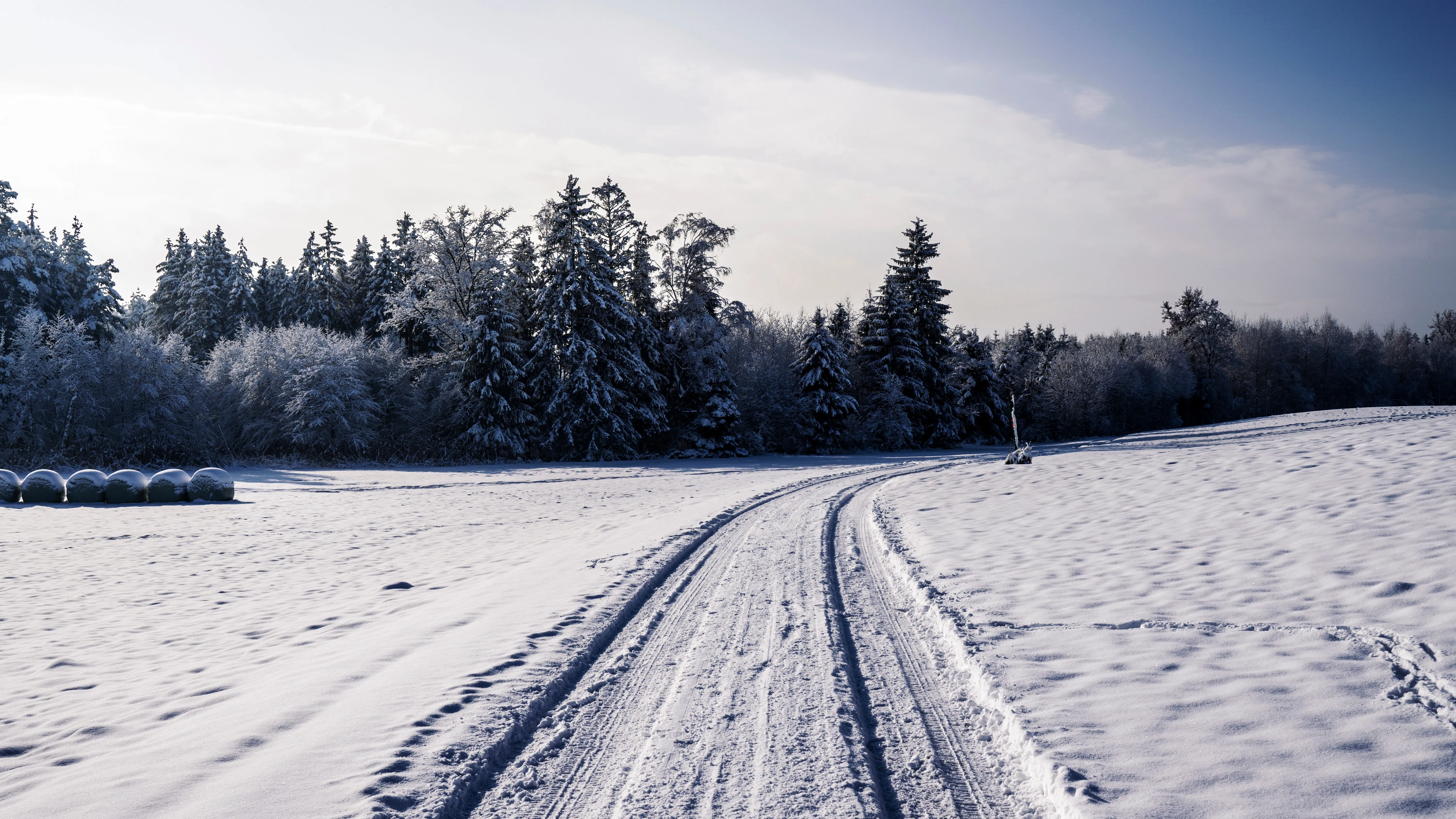 طبيعي مناظر طبيعية شجرة الثلج الشتاء الهواء الطلق السكة الحديدية السماء الغيمة خلفية على الكمبيوتر 4K خلفية سطح المكتب