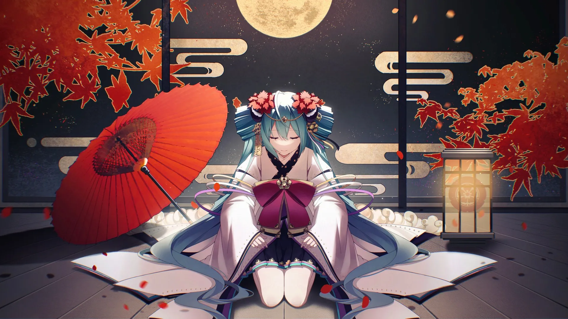 غلق العين أنمي فتاة أنمي شعر أزرق مظلة القمر زهور ورق حائط حاسوب 4K ورق حائط