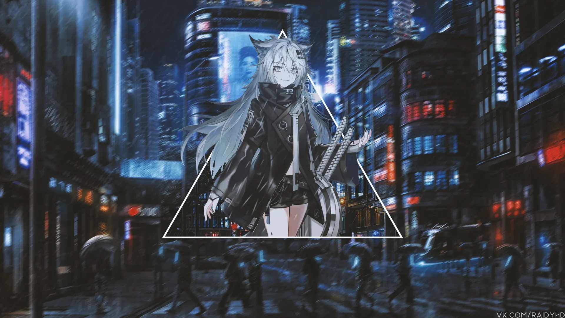 شعر طويل, فتاة أنمي, أنمي, رسم كاريكاتيري, مدينة, مدينة, مطر, خلفية كمبيوتر, صورة عالية الدقة
