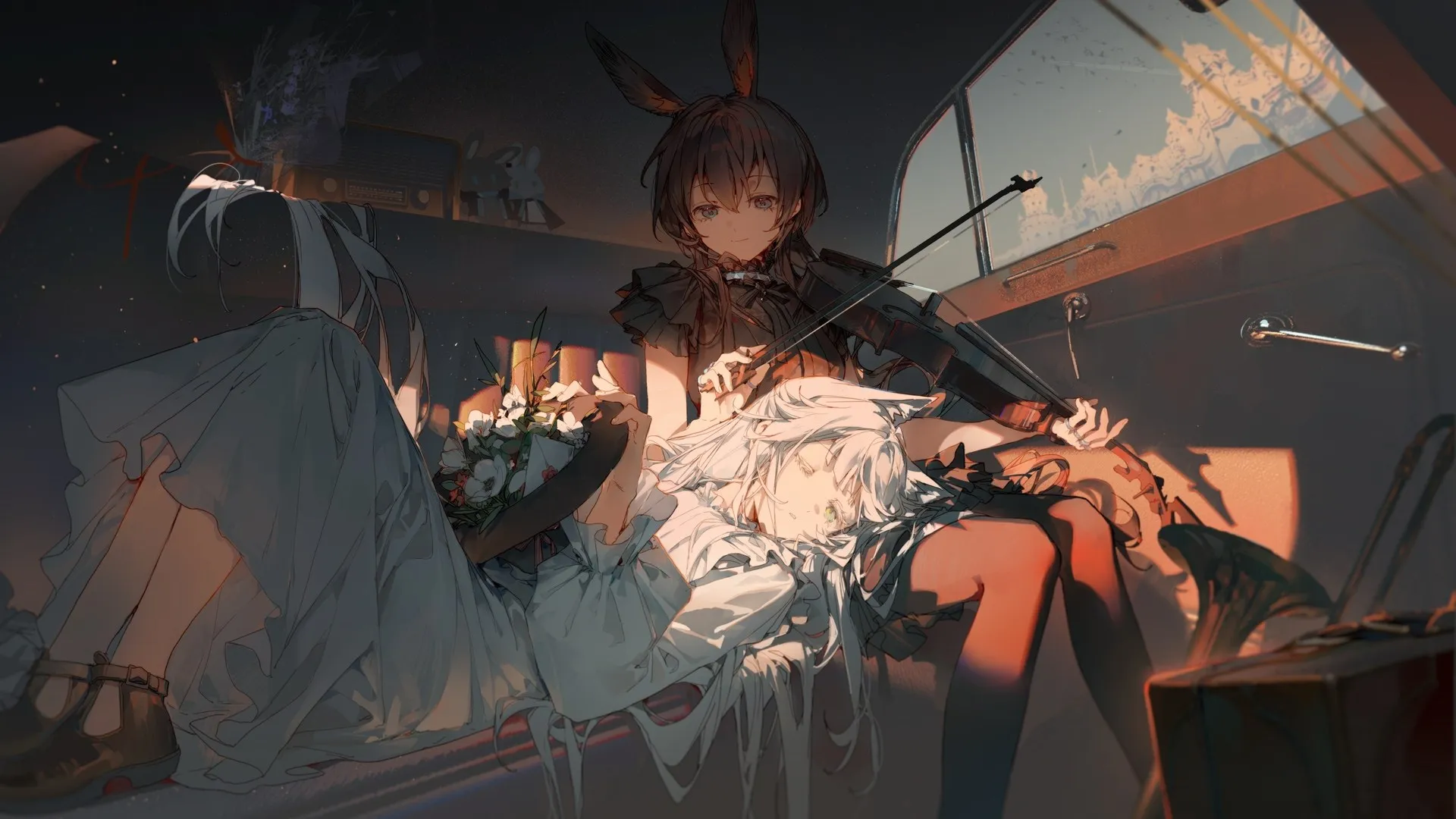 فتاة أنمي، كمان، أدوات موسيقية، خلفية حاسوبية، صور خلفيات 4K
