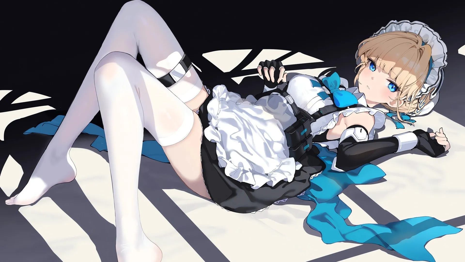 ممددة، ممددة على الظهر، ذهب وأزرق عينين، أنمي، فتاة أنمي، خلفيات سطح المكتب، خلفيات 4K