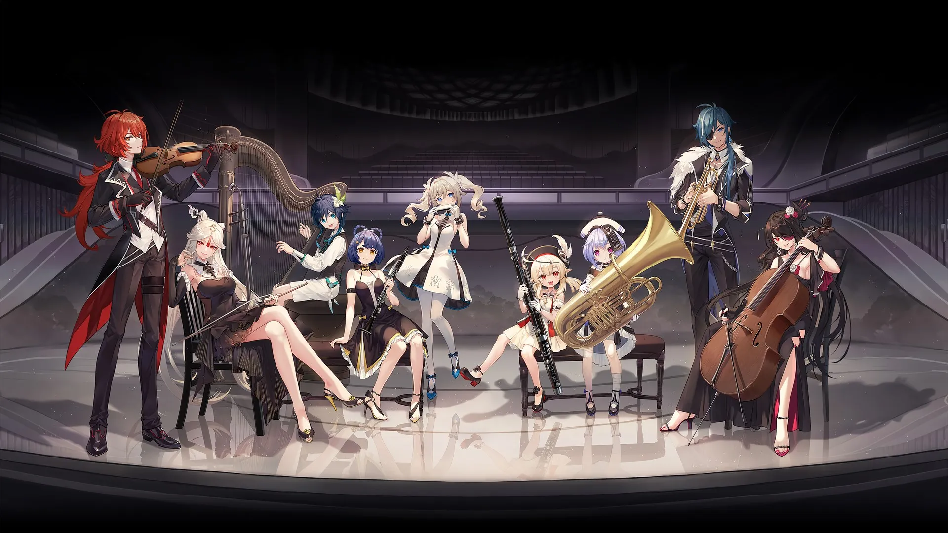 Genshin فرقة موسيقية موسيقى كمان كمان قيثارة ترومبون أدوات موسيقية