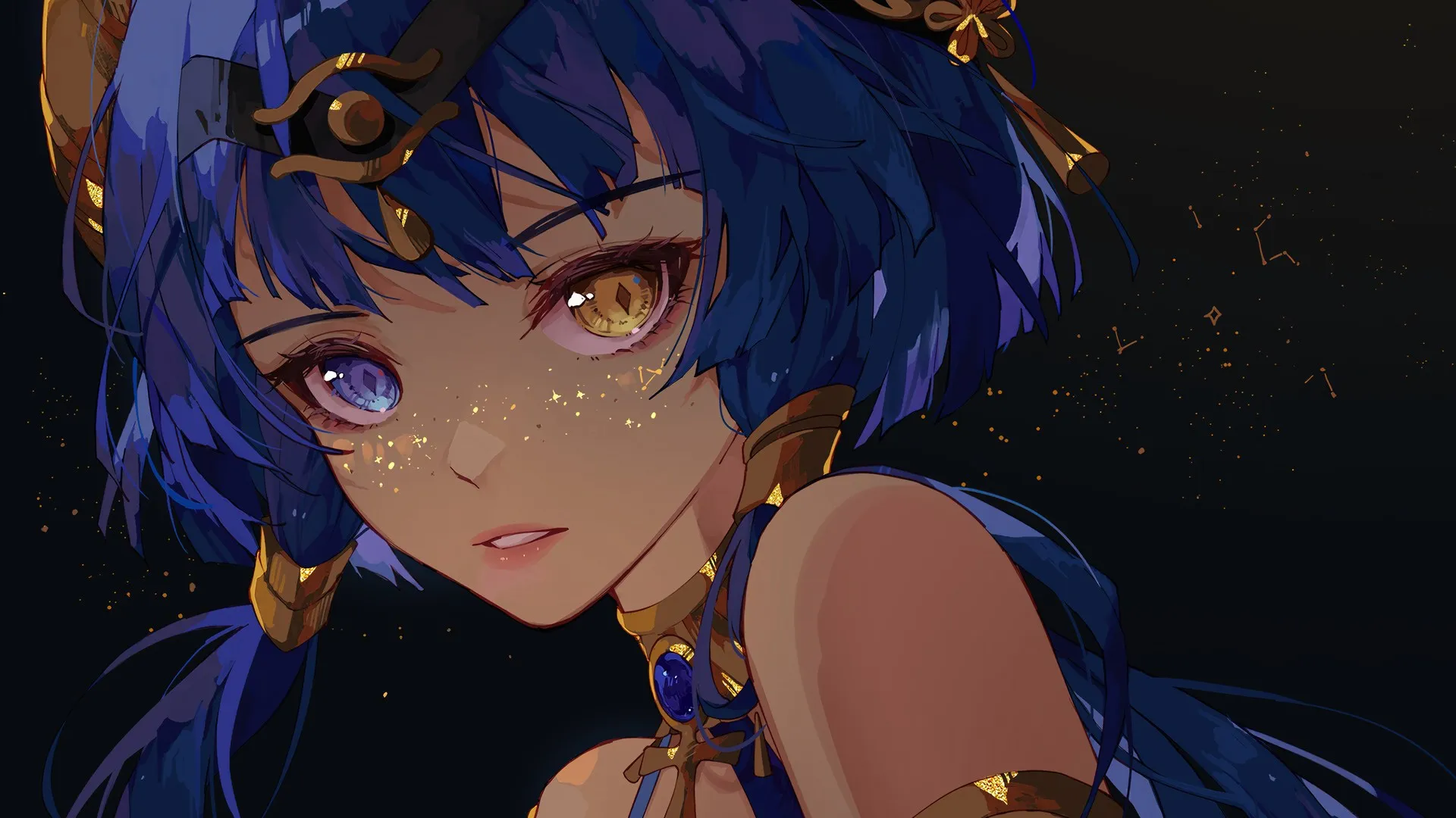 شعر أزرق، فتاة أنمي، جينيا، كنديس، عيون مختلفة