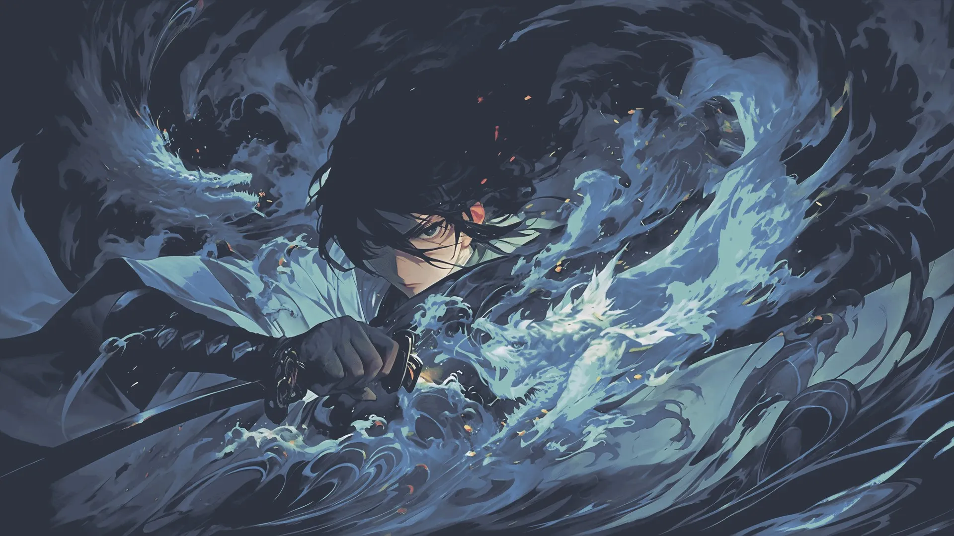 مشاهدة الجمهور، شعر قصير، سيف، محارب خيالي، ماء، فتى رسوم متحركة، سلاح، ديناصور، كائن حي، تعبير بارد، فن