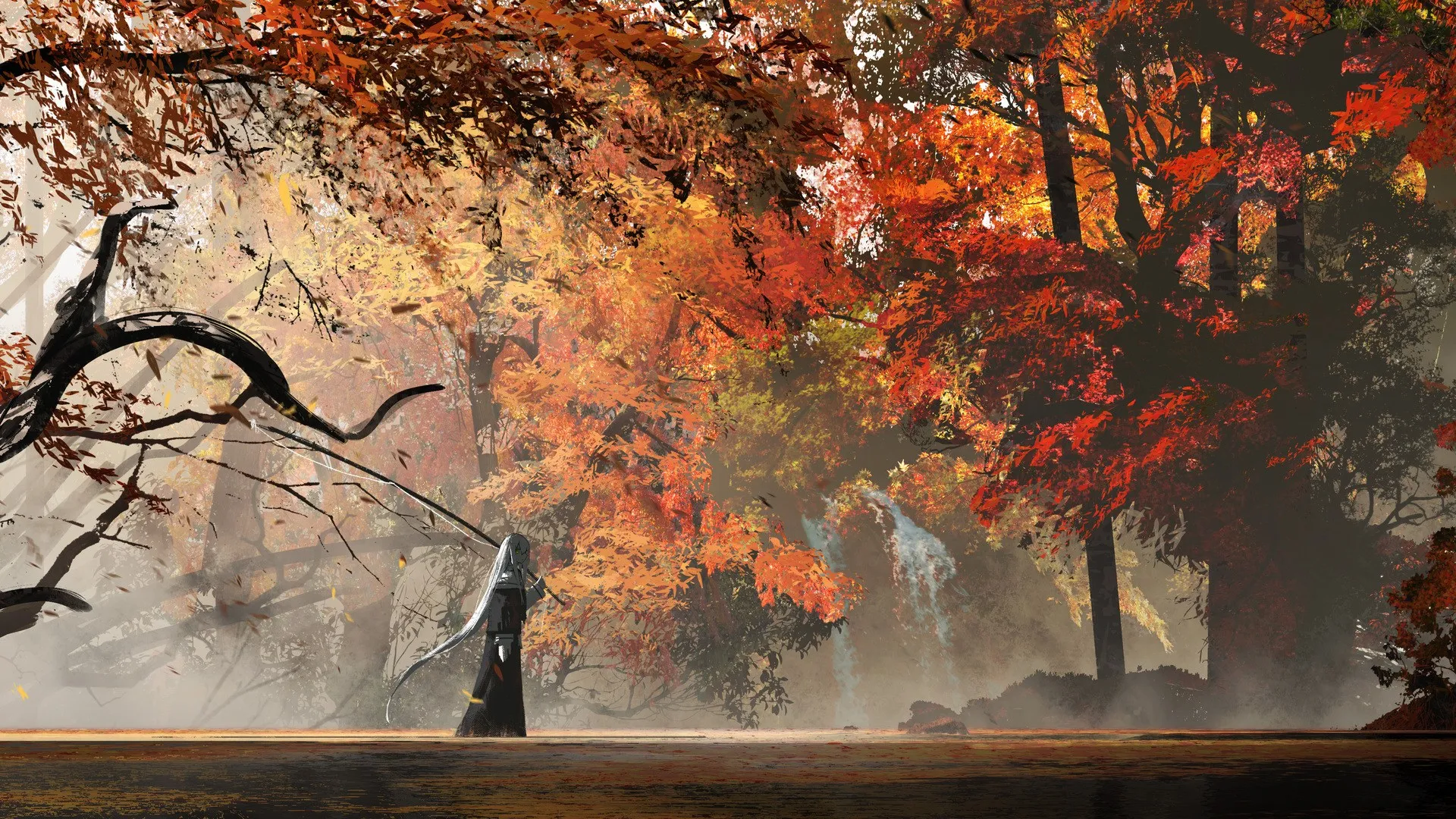 فن رقمي، أعمال فنية، غابة، أشجار، قارب صيد، فصل الخريف، أوراق خلفية للكمبيوتر، أوراق خلفية 4K