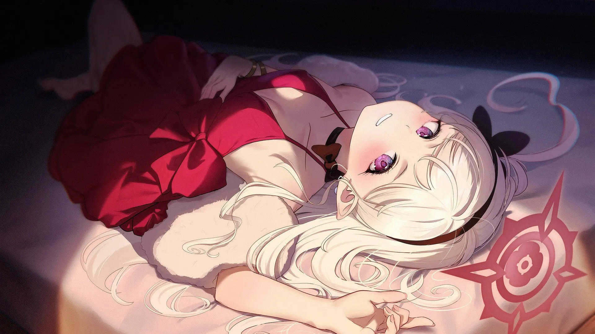 شعر طويل، شعر أبيض، فتاة كرتونية، فستان أحمر، أرشيف أزرق، فن معجب، ورق جانبي حاسوبي، ورق جانبي 4K