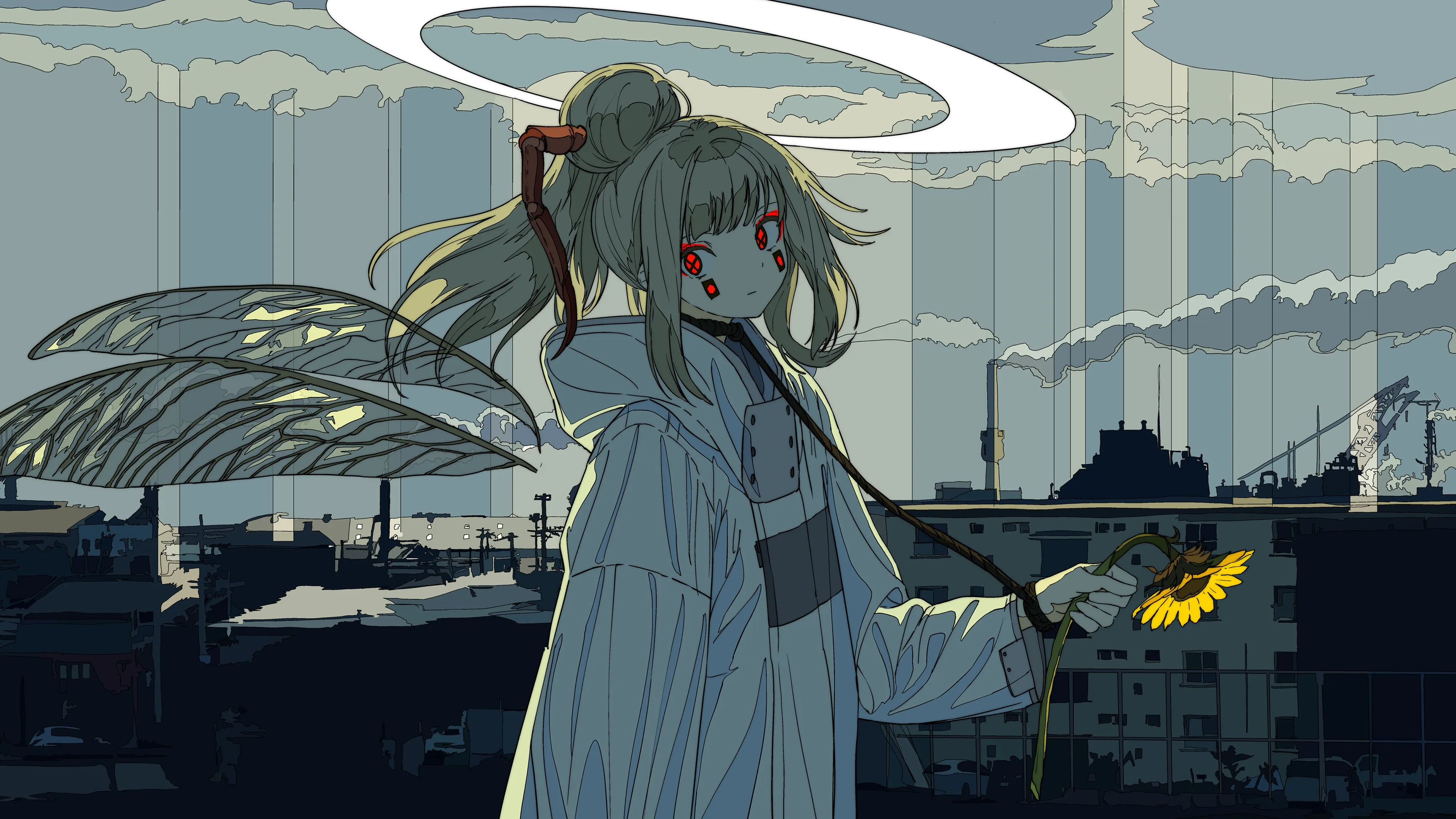 أنمي فتاة صورة عالية الدقة زهور الشمس 4K بساطة